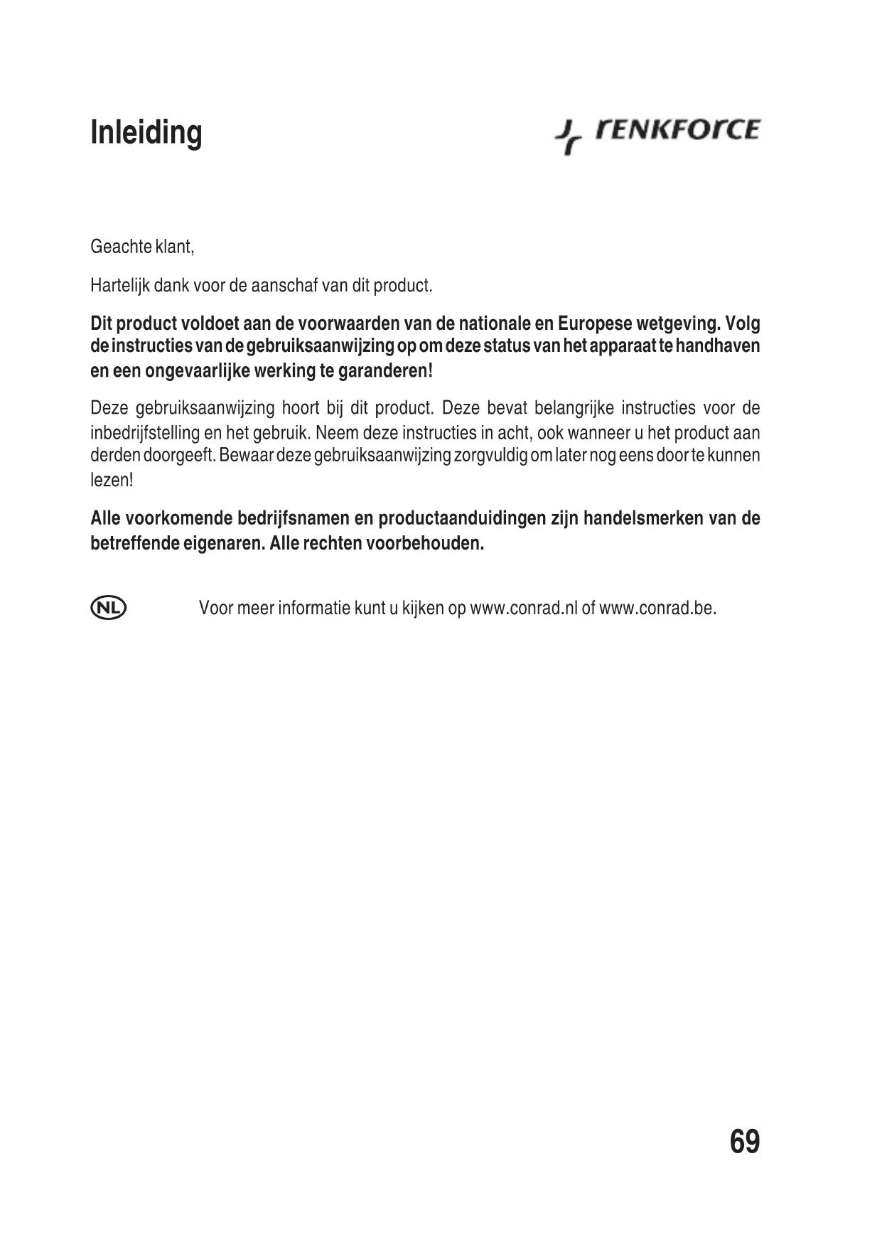 Deze gebruiksaanwijzing hoort bij dit product. Deze bevat belangrijke instructies voor de inbedrijfstelling en het gebruik. Neem deze instructies in acht, ook wanner u het product aan derden doorgeeft. Bewaar deze gebruiksaanwijzing zorgvuldig om later nog eens doorte kunnen lezen!