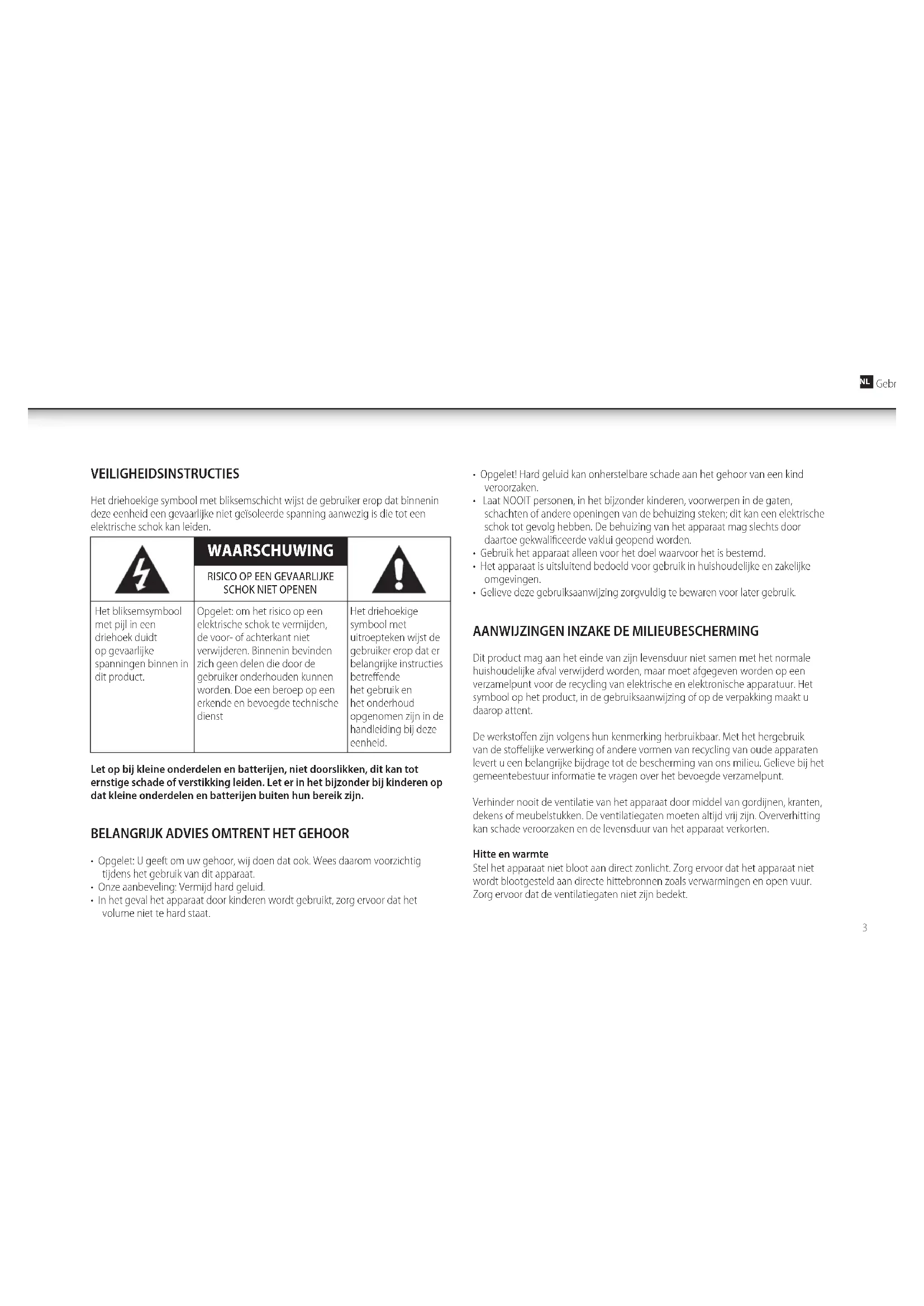 - Opgelet: U geeft om uw gezhoor, wij doeon dat ook. Wees waarom voorzichtig tijdens het gebruik van dit apparaat.
