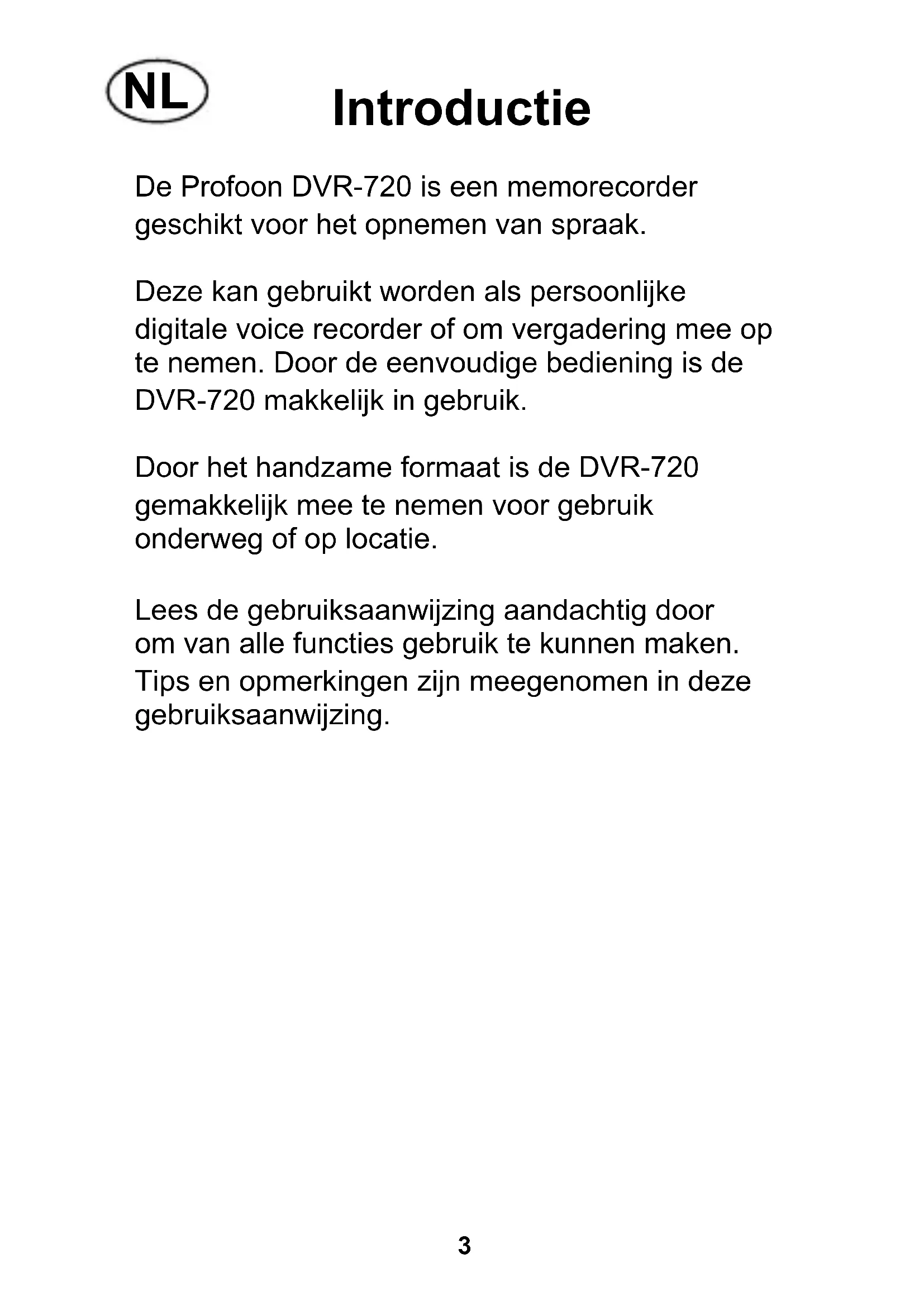 DVR720 - Spraakrecorder PROFOON - Gratis gebruiksaanwijzing en handleiding
