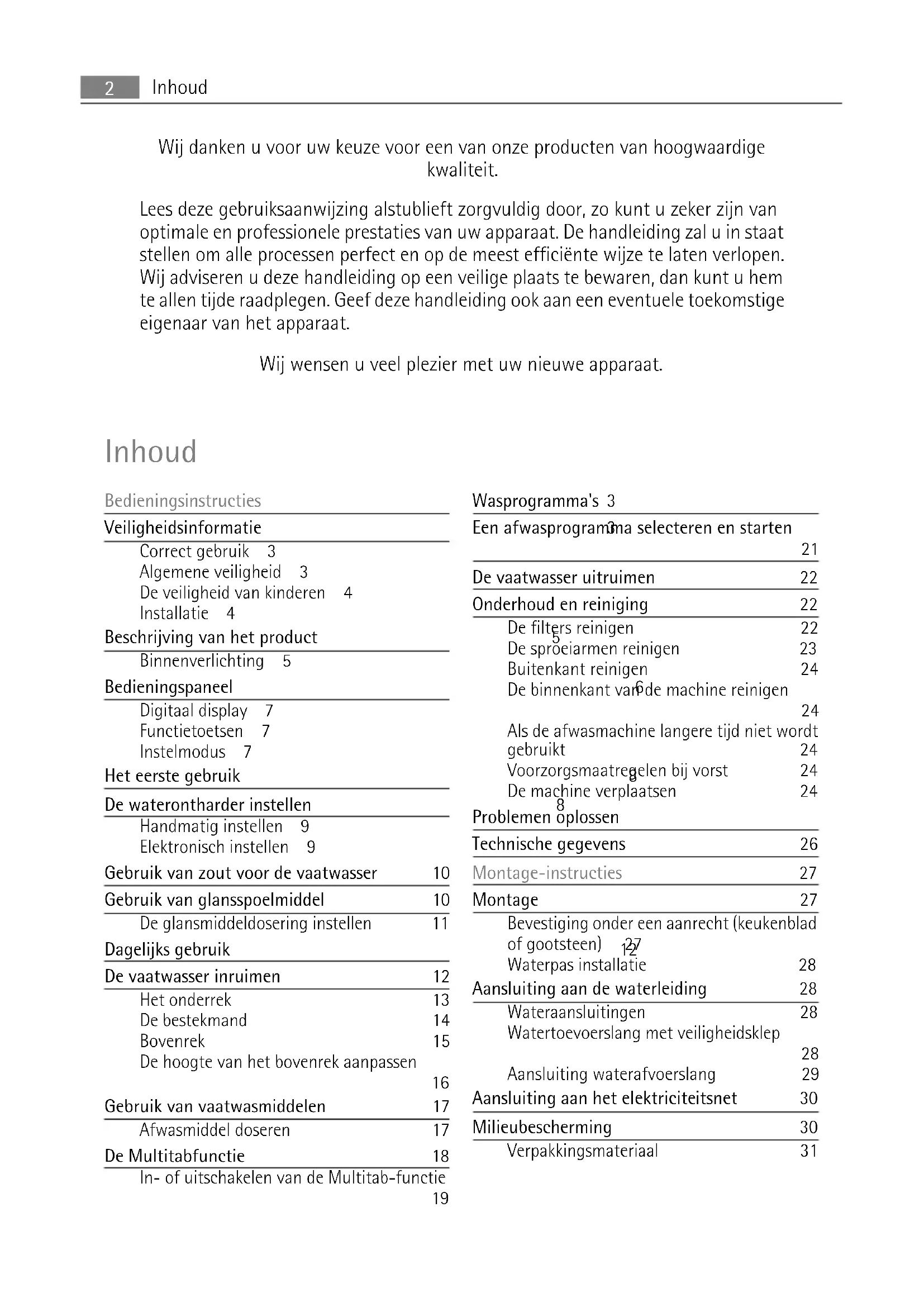 Aansluiting waterafvoerslang 29 Aansluiting aan het elektriciteitsnet 30 Milieubescherming 30 Verpakkingsmateriaal 31