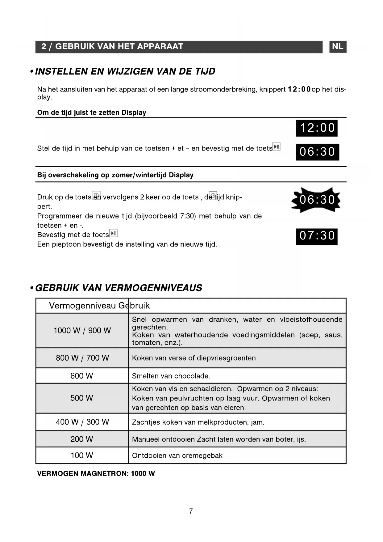 2 / GEBRUIK VAN HET APPARAATNL