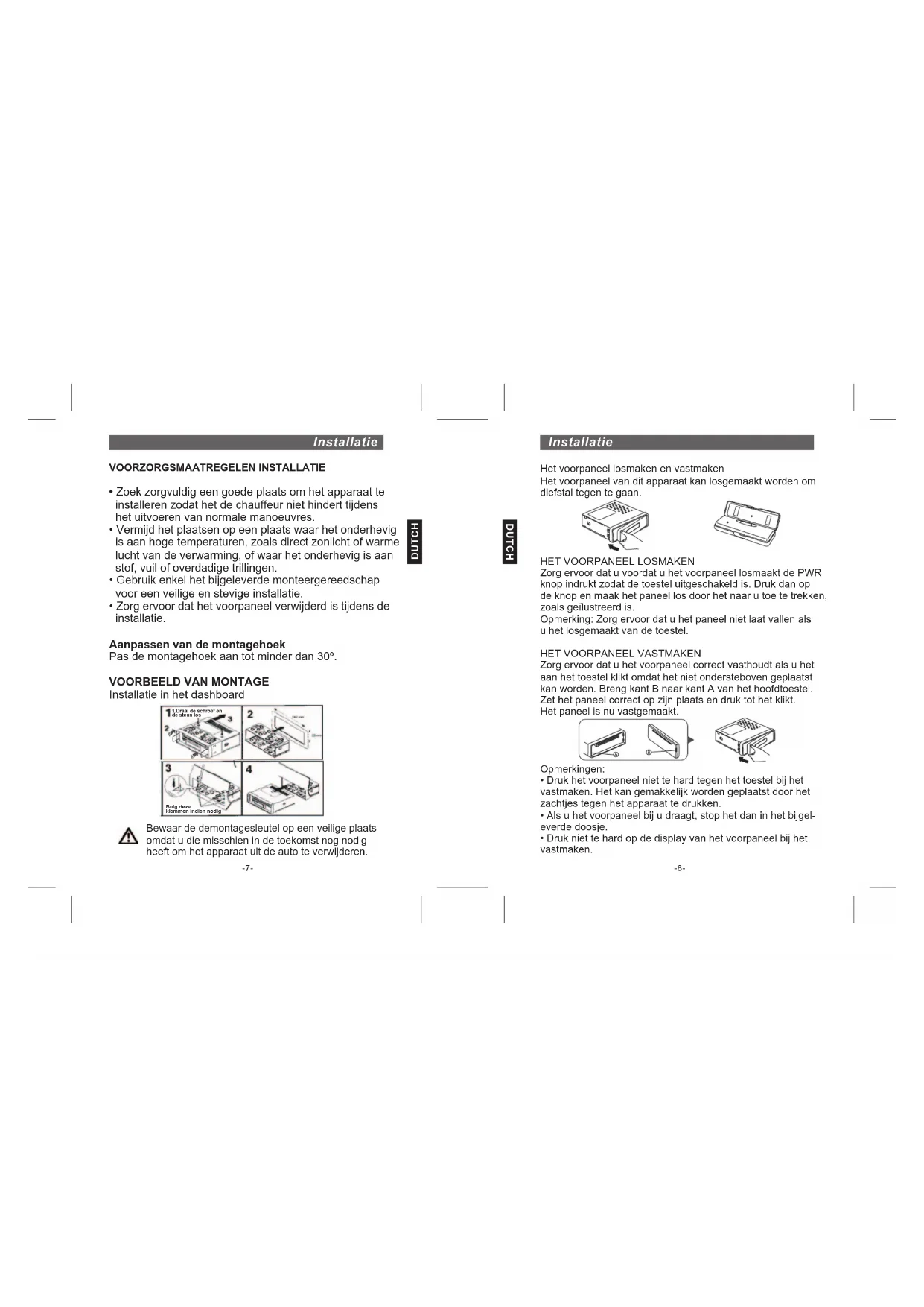 Het voorpaneel van dit apparaat kan losgemaakt worden om diefstal tegen te gaan.