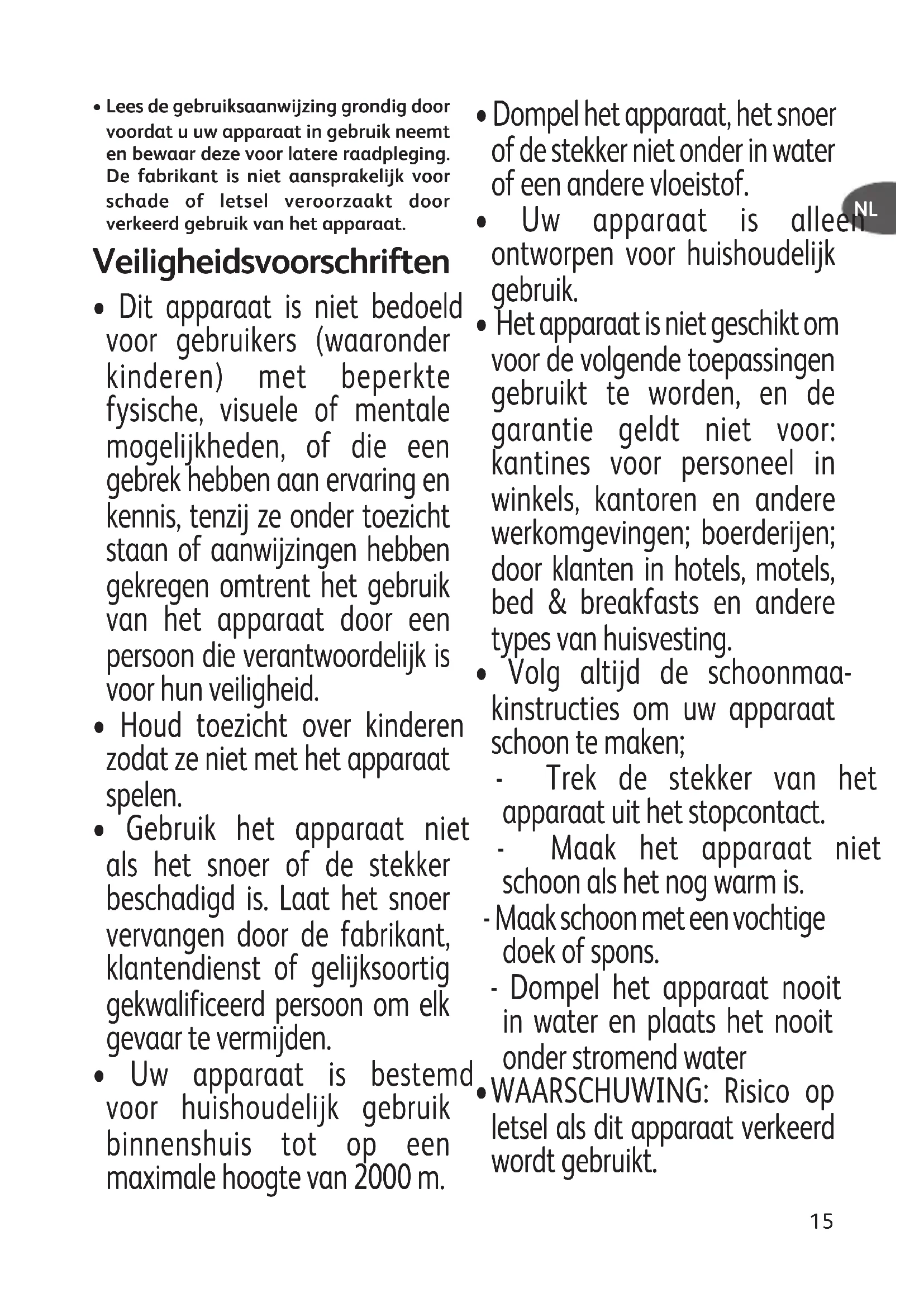 - Uw apparaat is alleen ontworpen voor huishoudelijk gebruik.