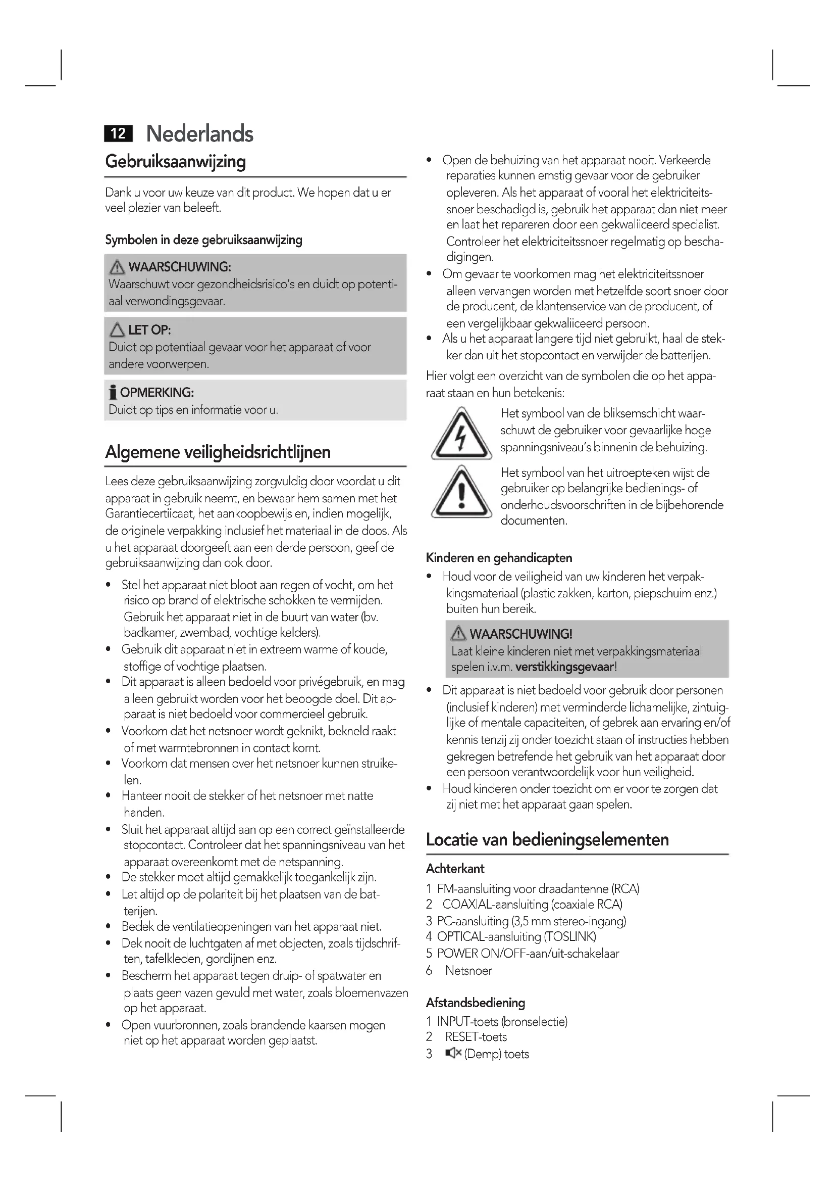 - Houd kinderen onder toezicht om er voor te zorgen dat zij Niet met het apparaat gaan spelen.