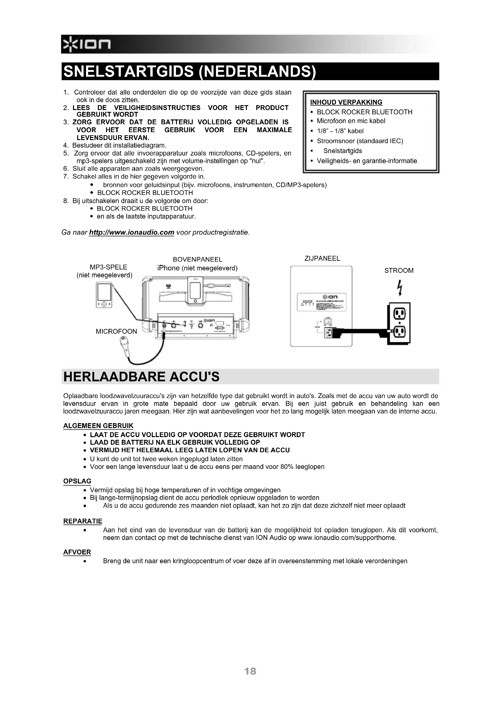 Ga naar http://www.ionaudio.com voor productregistratie. INHOUD VERPAKKING