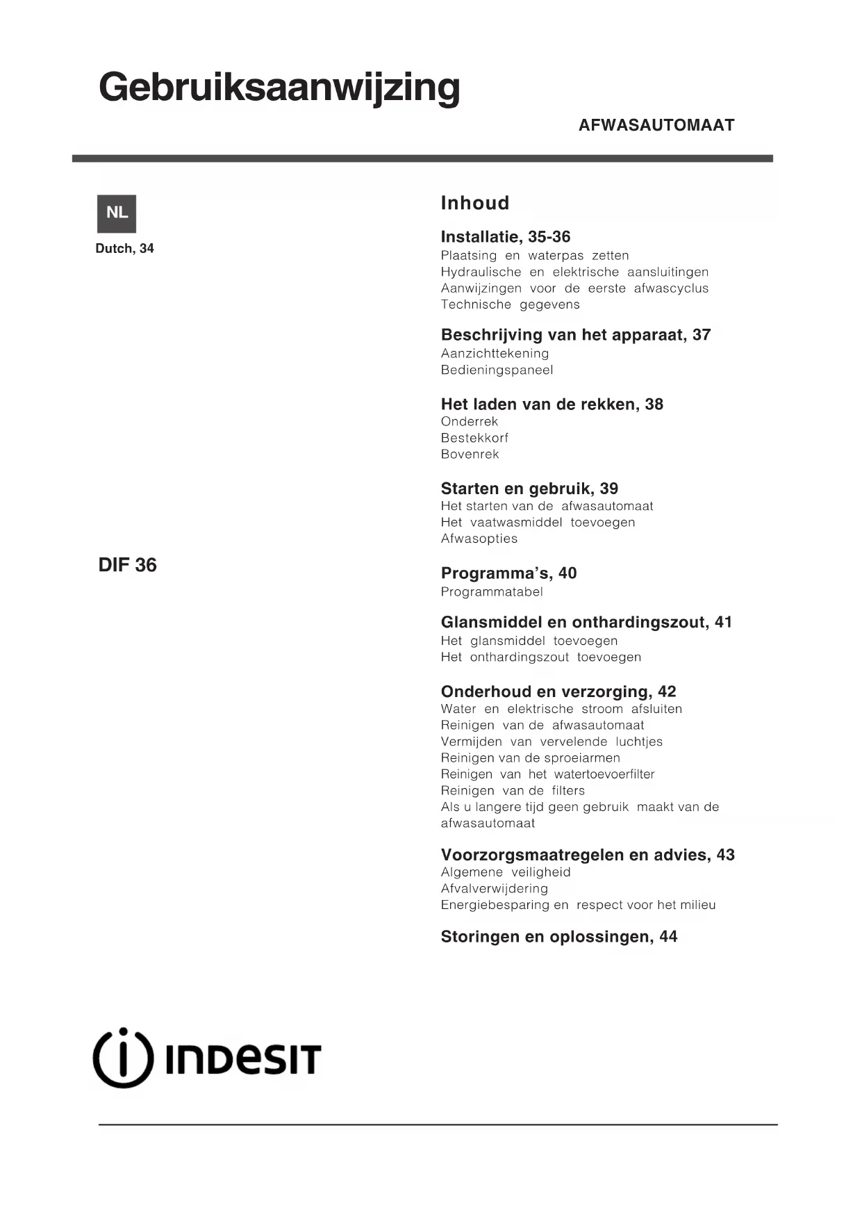 DIF 36 G - Vaatwassers INDESIT - Gratis gebruiksaanwijzing en handleiding
