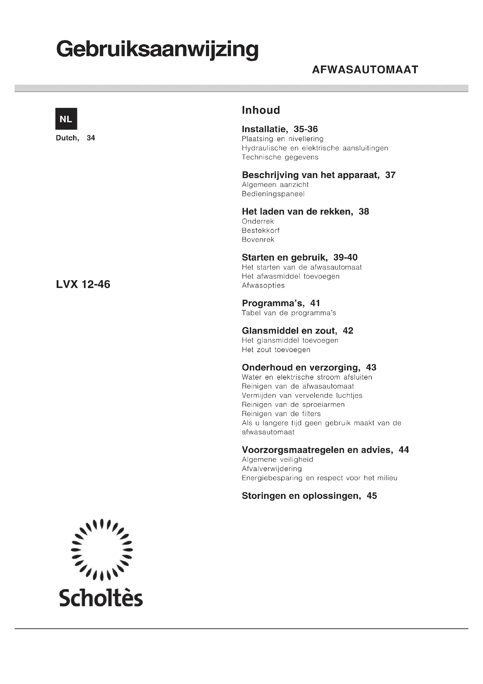 Vind de handleiding van het apparaat gratis LVX 1246 AN WH SCHOLTES in PDF-formaat.