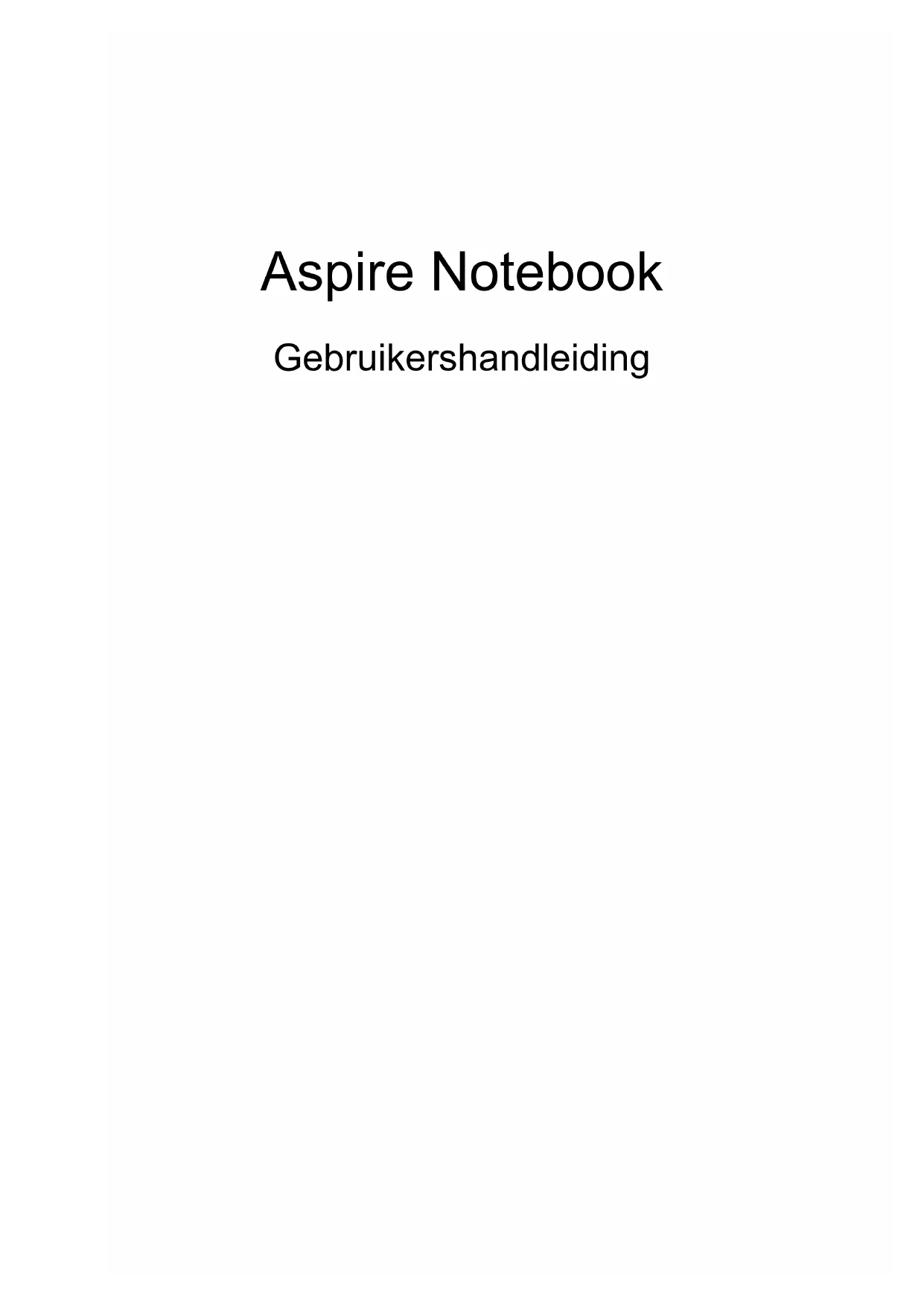 - v'n Pixel fault class Class II Part no.: Ver.: 01.01.06Aspire Notebook GebruikershandleidingModelnummer: ________________________________ Serienummer: _________________________________ Aankoopdatum: ________________________________ Plaats van aankoop: ____________________________ © 2012 Alle rechten voorbehouden. Aspire Notebook Gebruikershandleiding Deze uitgave: 01/2013iii Nederlands Informatie voor uw veiligheid en gemak Veiligheidsinstructies Lees deze instructies aandachtig door. Bewaar dit document voor toekomstige naslag. Volg alle waarschuwingen en instructies die aangegeven zijn op het product zelf. Het product uitschakelen voordat het wordt schoongemaakt Haal de stekker van dit apparaat uit het stopcontact voordat u het apparaat reinigt. Gebruik geen vloeibare schoonmaakmiddelen of schoonmaakmiddelen uit spuitbussen. Reinig alleen met een vochtige doek. VOORZICHTIG loskoppelen van de stekker Let op de volgende richtlijnen als de stroomkabel op de stroombron wordt aangesloten of losgekoppeld: Installeer de stroombron voordat u de stroomkabel in het stopcontact steekt. Koppel de stroomkabel eerst los voordat de stroombron van de computer wordt losgekoppeld. Als het systeem meerdere stroombronnen heeft, koppel dan alle stroomkabels uit alle stroombronnen los. VOORZICHTIG bij Toegankelijkheid Zorg dat het gebruikte stopcontact makkelijk toegankelijk is en zo dicht mogelijk bij de gebruikte apparatuur is. Als u de stroom van het apparaat wilt afhalen, zorg dan dat u de stroomkabel uit het stopcontact trekt. LET OP de bijgesloten dummykaart(en) (alleen voor bepaalde modellen) De computer wordt geleverd met plastic dummies, nepkaarten, in de kaartsleuven. Dummies beschermen ongebruikte sleuven tegen stof, metalen objecten en andere deeltjes. Bewaar de dummies en gebruik deze als in de sleuven geen kaarten worden gebruikt. Waarschuwingen
