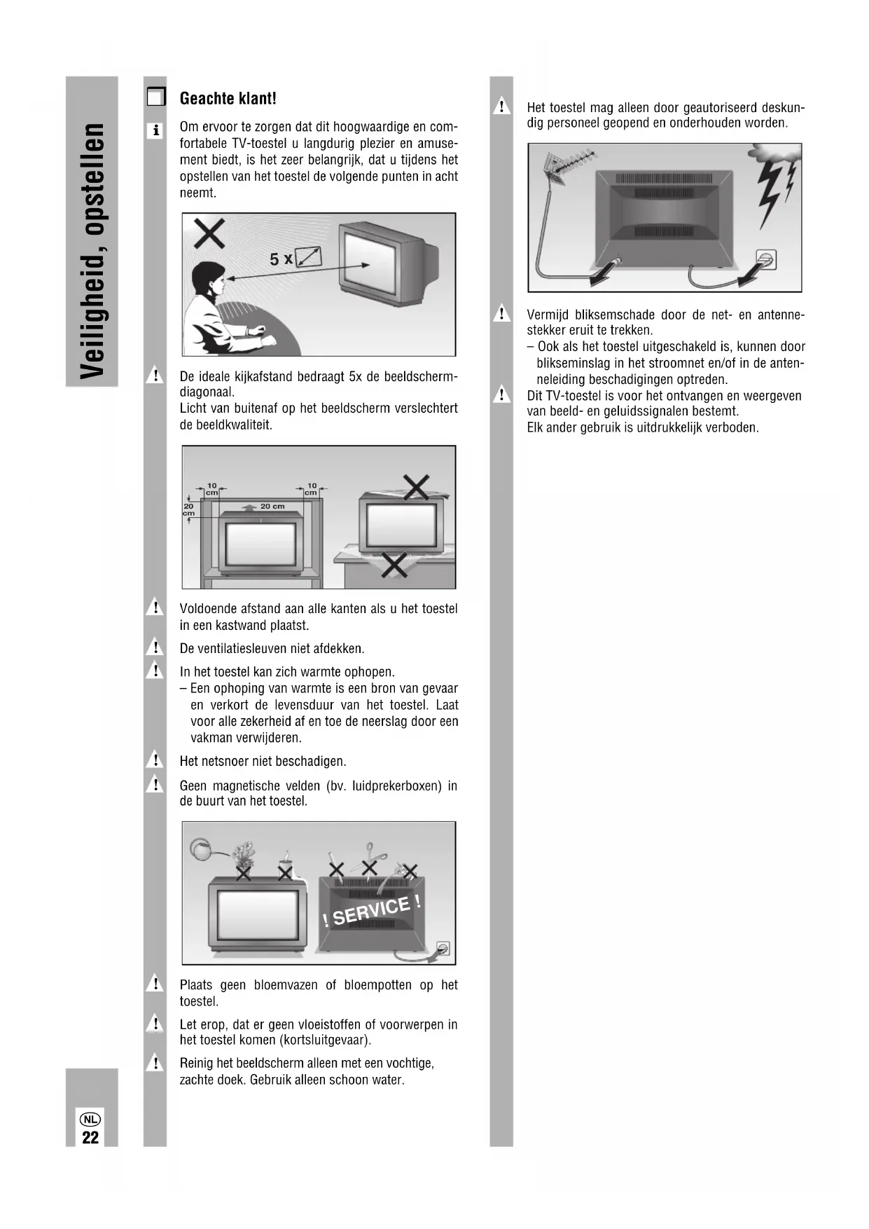 Dit TV-toestel is voor het ontvangen en weergevenvan beeld- en geluidssignalen bestemt.Elk ander gebruik is uitdrukkelijk verboden. Geachte klant!Om ervoor te zorgen dat dit hoogwaardige en com-fortabele TV-toestel u langdurig plezier en amuse-ment biedt, is het zeer belangrijk, dat u tijdens hetopstellen van het toestel de volgende punten in achtneemt.