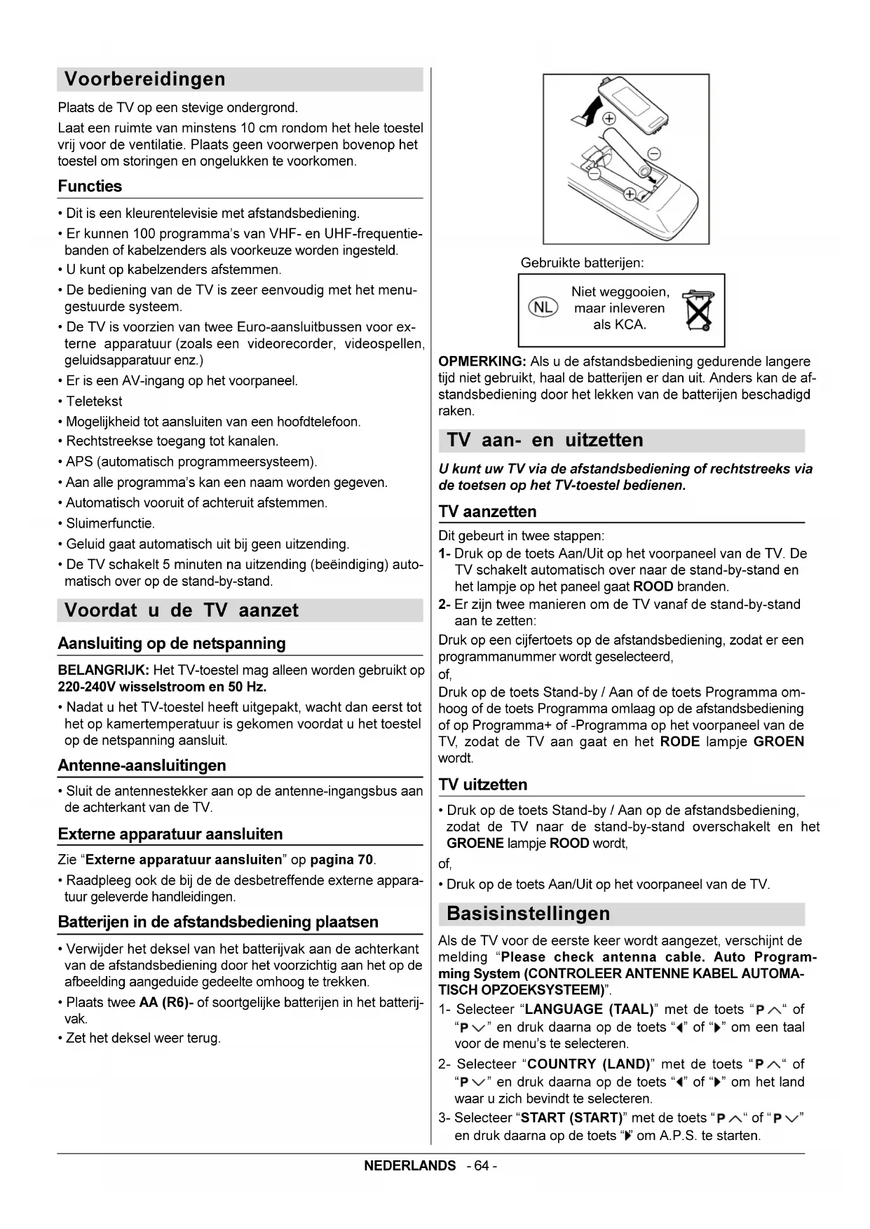 Het TV-toestel dient alleen te worden gebruikt vanaf een stopcontact met 220-240V wisselstroom en 50Hz Controller of het voltage juist is.