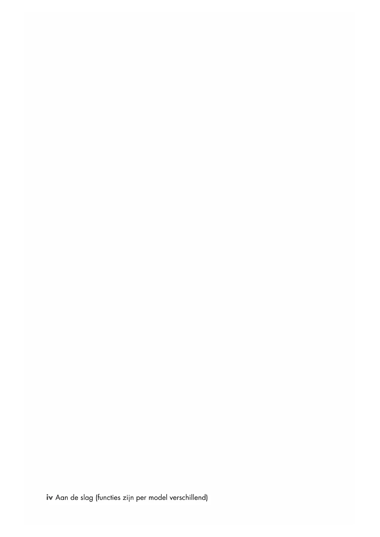 - verrouillage de l’ordinateur 14 vidéo dépannage 40 volume, réglage audio 16Aan de slagDe enige garanties voor producten en diensten van Hewlett-Packard staan vermeld in de expliciete garantievoorwaarden bij de betreffende producten en diensten. Aan de informatie in deze publicatie kunnen geen aanvullende rechten worden ontleend. HP is niet aansprakelijk voor technische fouten, drukfouten of weglatingen in deze publicatie. HP aanvaardt geen verantwoordelijkheid voor het gebruik of de betrouwbaarheid van de HP-software op apparatuur die niet door HP is geleverd. Dit document bevat informatie die eigendom is van HP en door de wetten op het auteursrecht wordt beschermd. Geen enkel deel van dit document mag worden gekopieerd, vermenigvuldigd of in een andere taal worden vertaald zonder de vooraf verleende schriftelijke toestemming van HP. Hewlett-Packard Company P.O. Box 4010 Cupertino, CA 95015-4010 USA © Copyright 2000–2009 Hewlett-Packard Development Company, L.P. Dit product bevat copyright-beschermingstechnologie die door Amerikaanse patenten en andere rechten van intellectuele eigendom wordt beschermd. Gebruik van deze copyright-beschermingstechnologie moet door Macrovision goedgekeurd worden en is bestemd voor gebruik in de huiselijke omgeving en ander beperkt gebruik tenzij anderzijds goedgekeurd door Macrovision. Terugwerkend construeren en demonteren zijn verboden. Microsoft, het Windows logo en Windows zijn handelsmerken of geregistreerde handelsmerken van de Microsoft groep van bedrijven in de Verenigde Staten en/of andere landen/provincies. Wi-Fi GECERTIFCIEERD 802.11n gebaseerd op Draft 2.0 Draft 2.0 verwijst naar de versie van de nog -niet-goedgekeurde IEEE 802.11n staandard die gebruikt wordt door de Wi-Fi Alliance tests vanaf juni 2007. De specificaties van de 802.11n WLAN (wireless local area network) zijn voorlopige specificaties; deze zijn niet definitief. Als de definitieve specificaties afwijken van de voorlopige specificaties, kan de communicatie van deze apparatuur met andere 802.11n WLAN-apparaten negatief worden beïnvloed. HP ondersteunt legaal gebruik van technologie en verleent geen goedkeuring of aanmoediging voor het gebruik van onze producten voor andere doeleinden dan die welke auteursrechtelijk zijn toegestaan. De informatie in dit document kan zonder voorafgaande kennisgeving worden gewijzigd.Inhoudsopgave iii Inhoudsopgave De computerinstallatie controleren p. 1