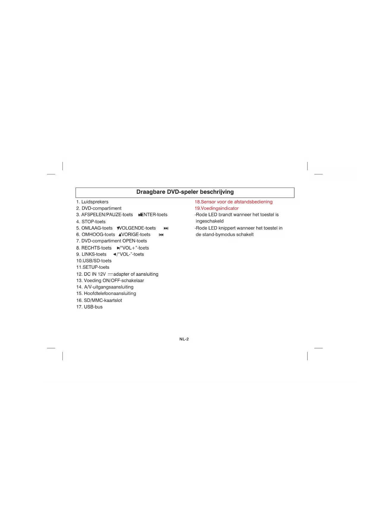 18 19NL-2 Draagbare DVD-speler beschrijving
