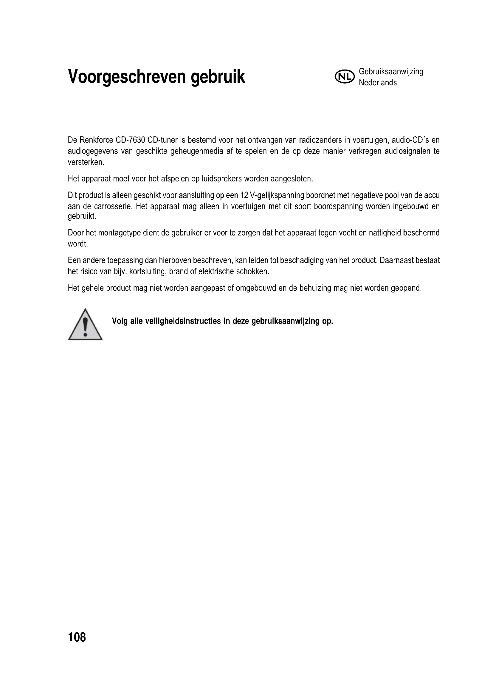 Met de Renkforce CD-7630 CD-tuner heeft u een betrouwbaar product aangeschaft dat volgens de{niewste technischeinzichten is vervaardigd.