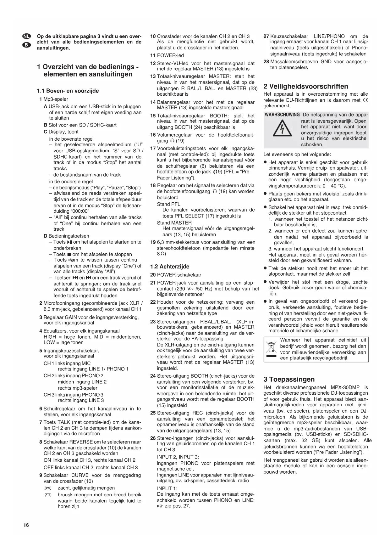 NL Op de uitklapbare pagina 3 vindt u een overzicht van alle bedieningselementen en de aansluitingen.