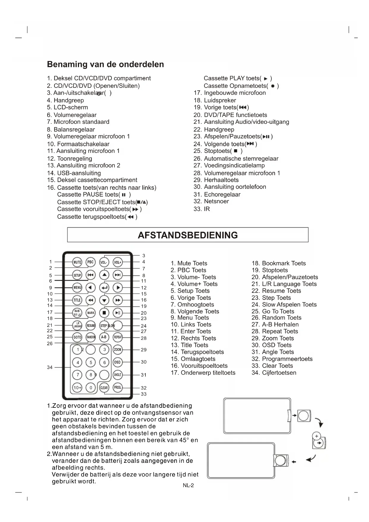 20.DVD/TAPE functietoets - Aansluiting Audio/video-uitgang