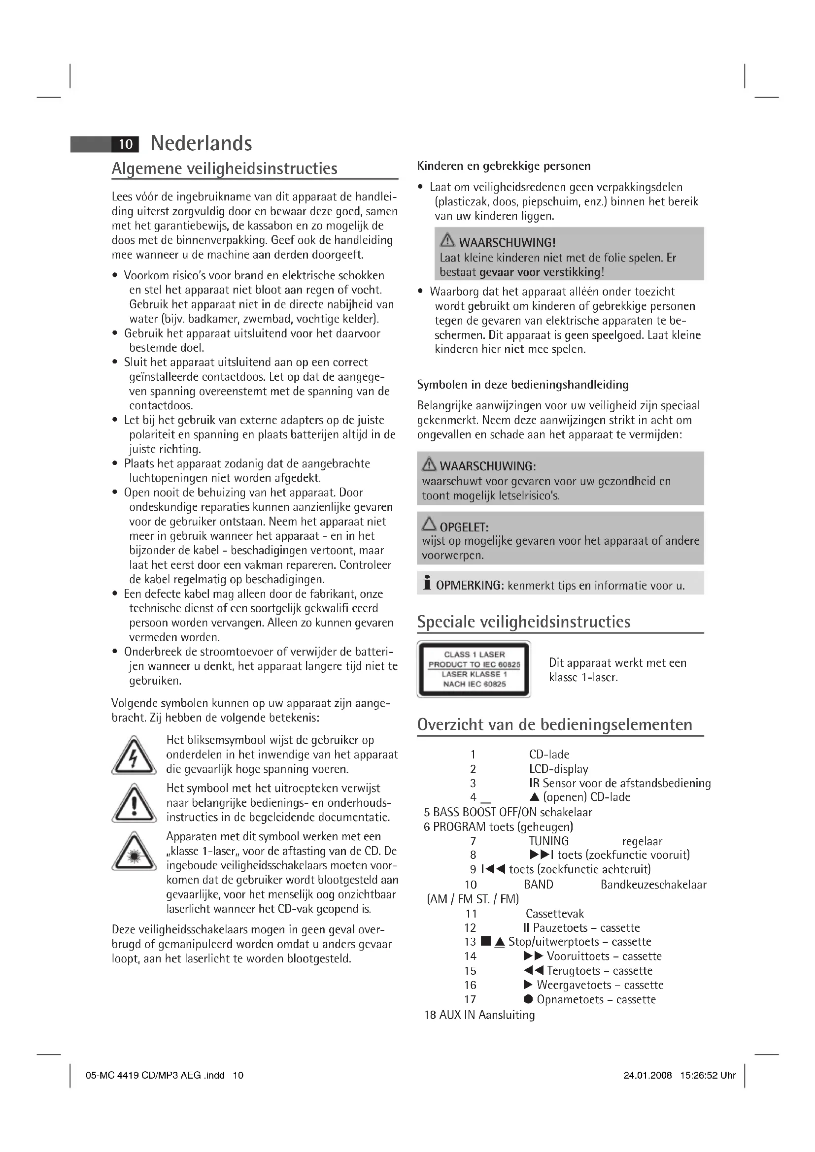 Download de handleiding voor uw Hifi-systeem in PDF-formaat gratis! Vind uw handleiding MC 4419 - AEG en neem uw elektronisch apparaat weer in handen. Op deze pagina staan alle documenten die nodig zijn voor het gebruik van uw apparaat. MC 4419 van het merk AEG.