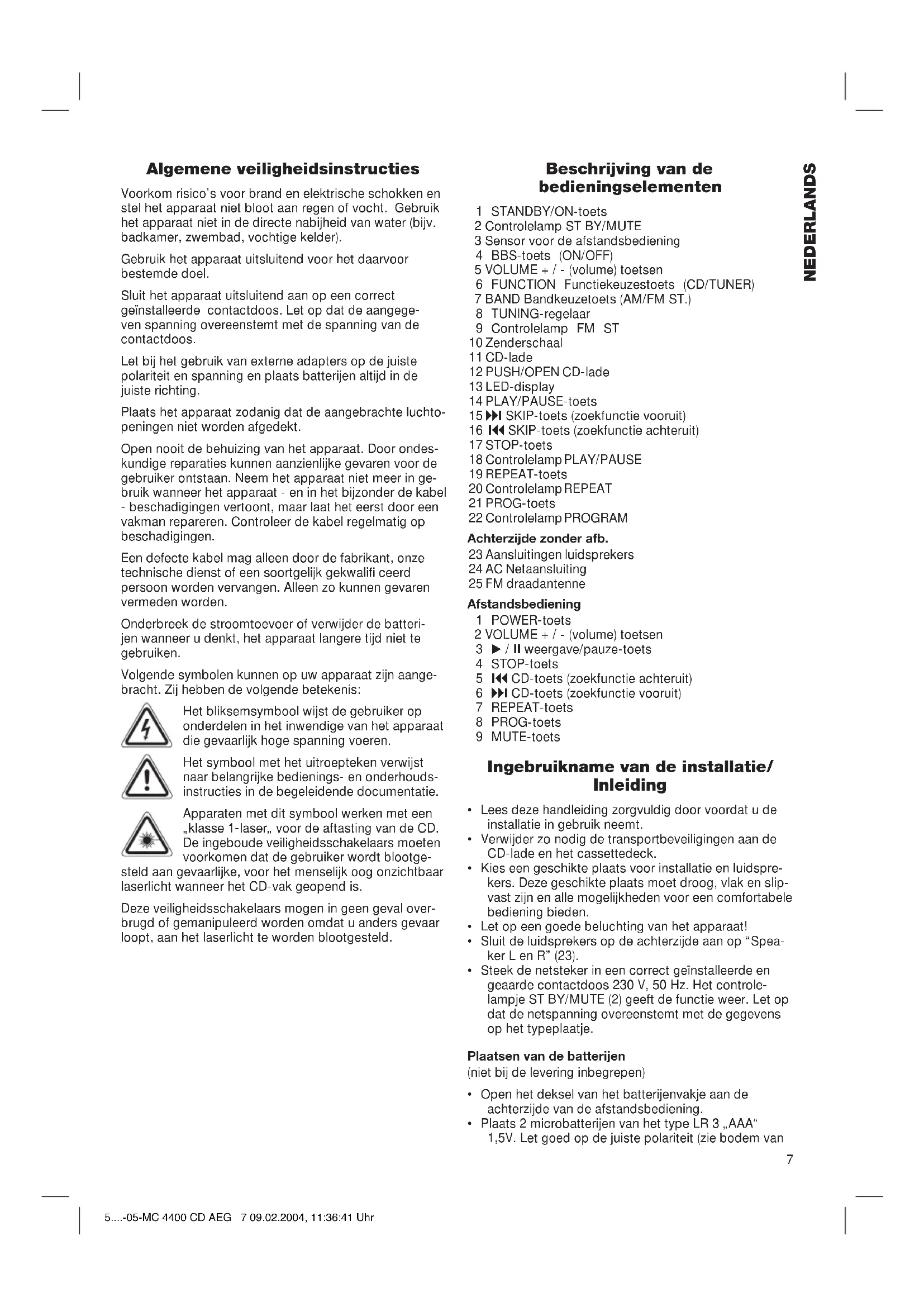 GEBRUIKSAANWIJZING MC 4400 CD AEG