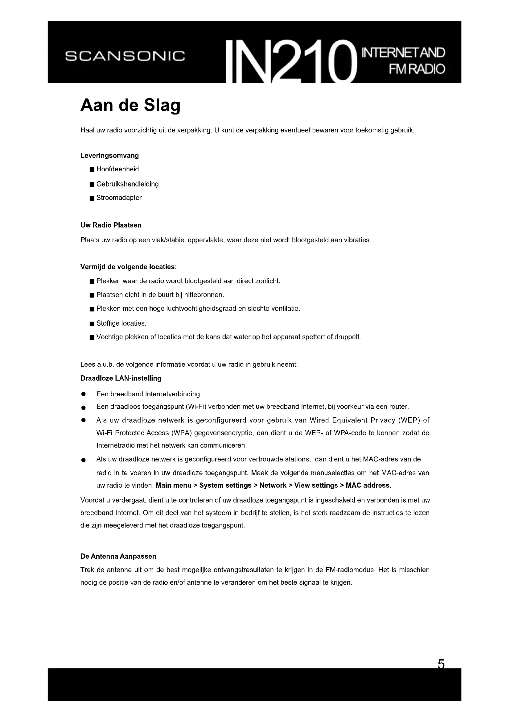 GEBRUIKSAANWIJZING IN210 SCANSONIC