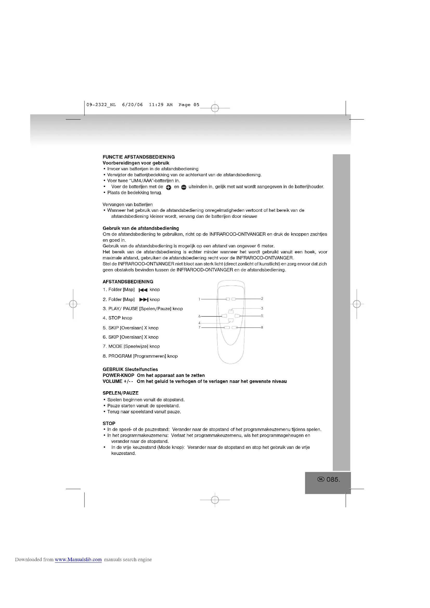 - Het scherm laat zien hoeveel nummers de cd in totaal bevat. 09-2322_NL 6/20/06 11:29 AM Page 03 Downloaded from www.Manualslib.com manuals search engine 084.