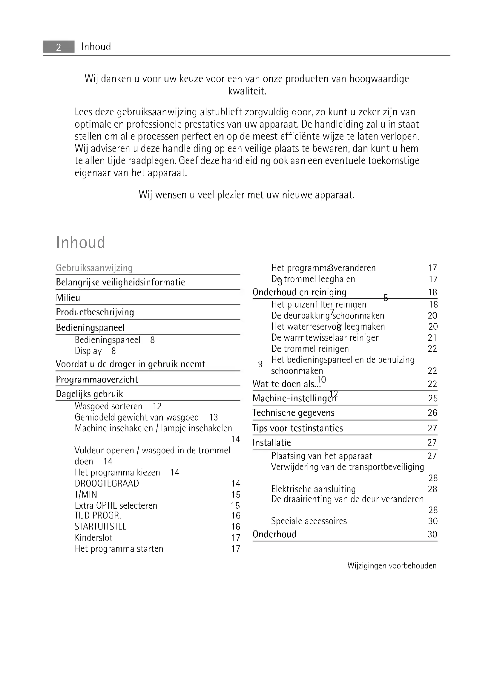 - De droogtrommel mag Niet worden gebruikt als voor het reinigen industrielle chemicalien zichen gezruikt.