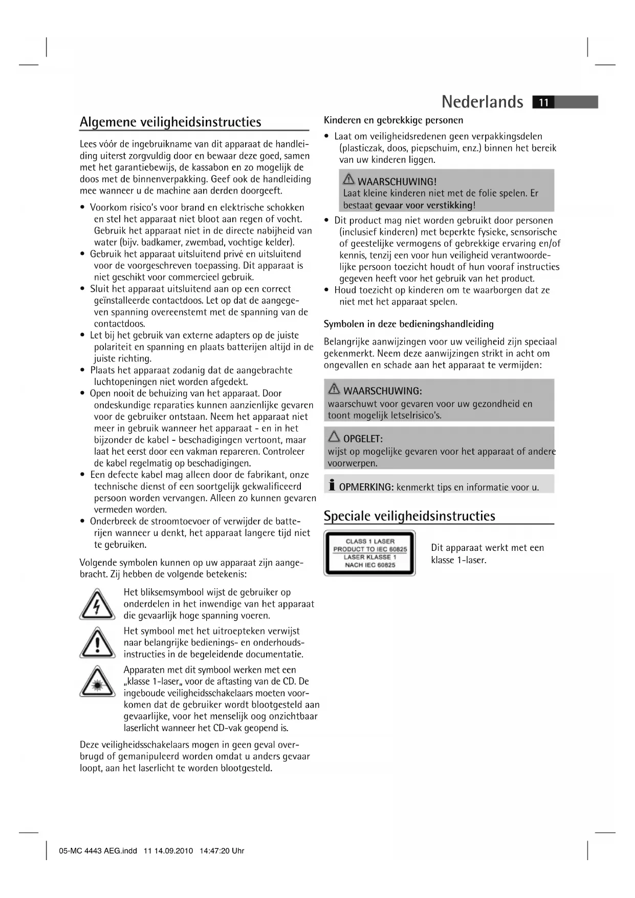Vind de handleiding van het apparaat gratis MC 4443 CD AEG in PDF-formaat.