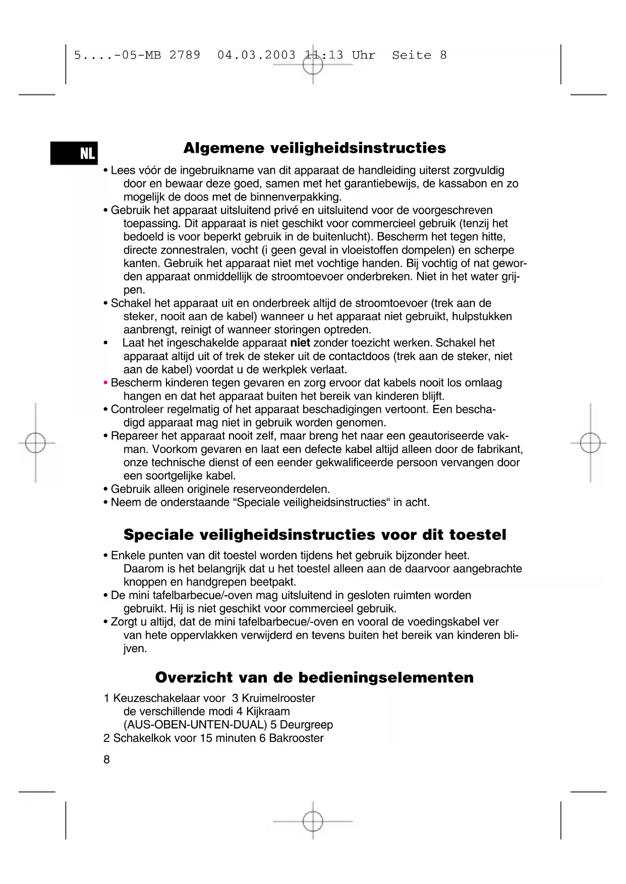 - De mini tafelbarbecue/-oven mag uitsluitend in gesloten ruimten worden gebruikt. Hij is niet geschikt voor commercieel gebruik.