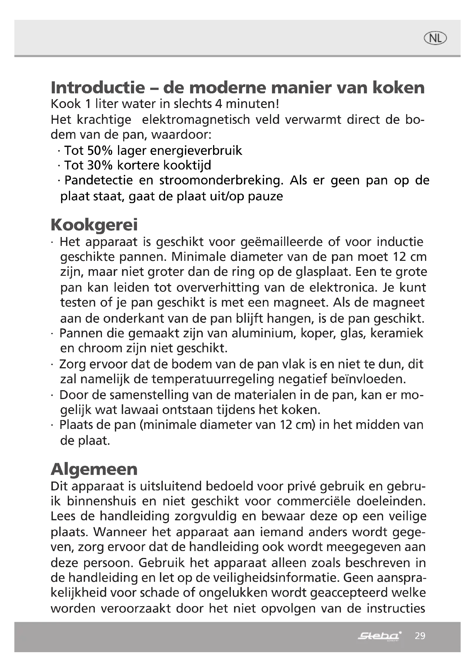 - Door de samenstelling van de materialen in de pan, kan er mo-gelijk wat lawaai ontstaanijdens het koken.