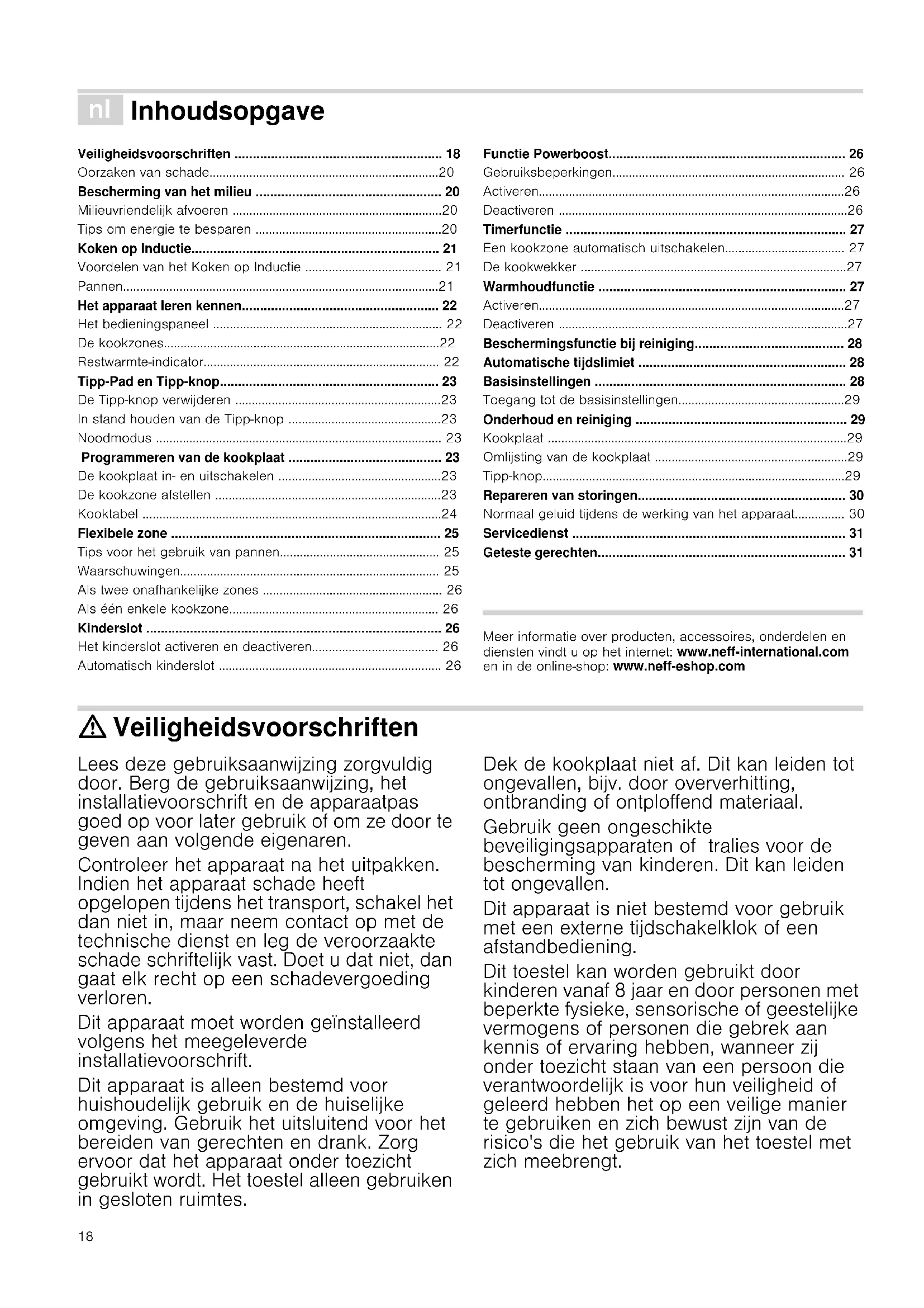 Meer informatie over producten, accessoires, onderdelen en diensten vindt u op het internet: www.neff-international.com en in de online-shop: www.neff-eshop.com