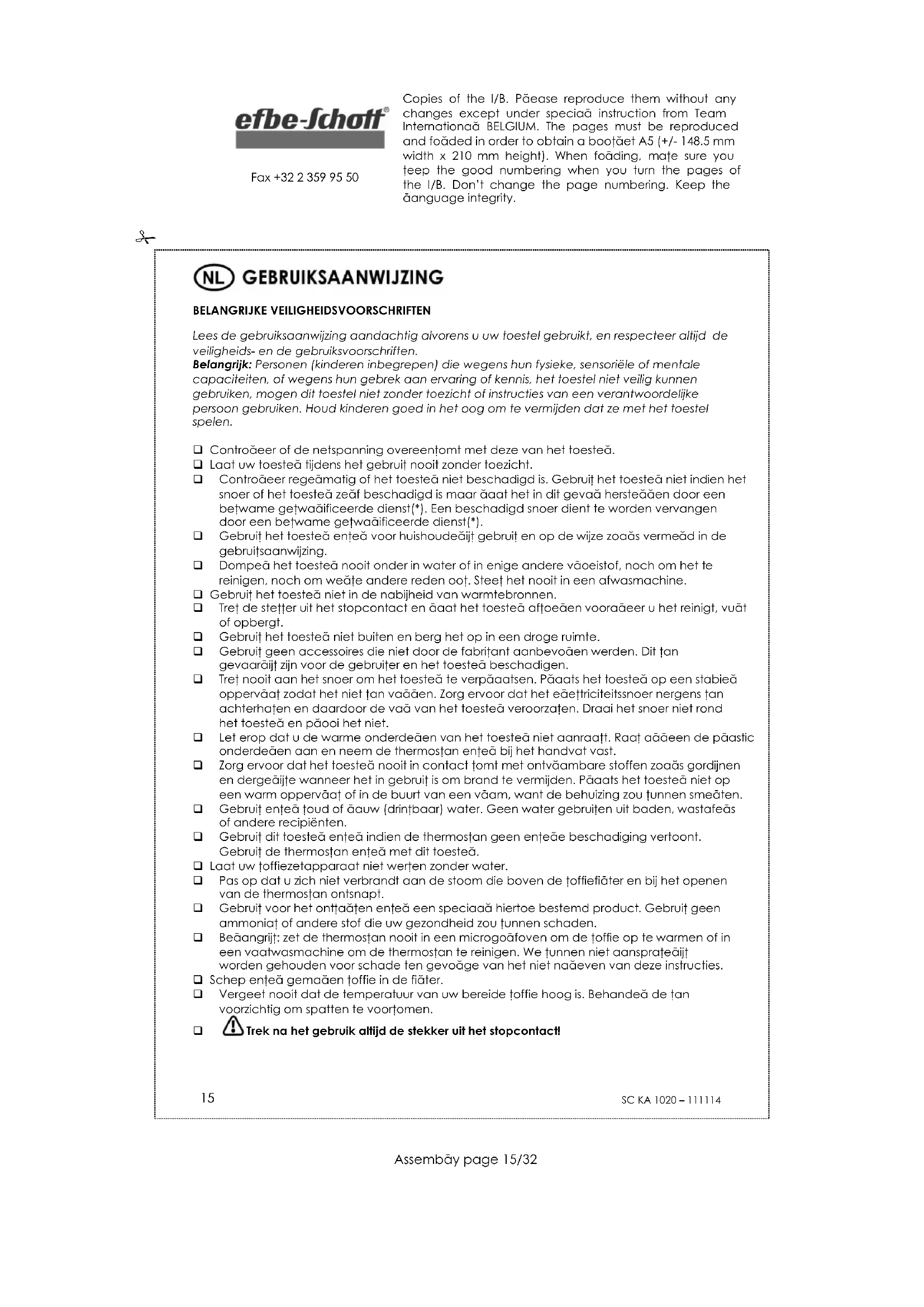 GEBRUIKSAANWIJZING KA 1020 Efbe-Schott