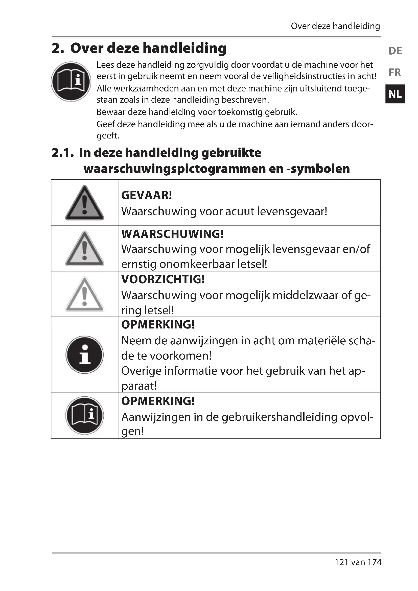 2.1. In denen handleiding gebruikte waarschuwingspictogrammen en -symbolen 121
