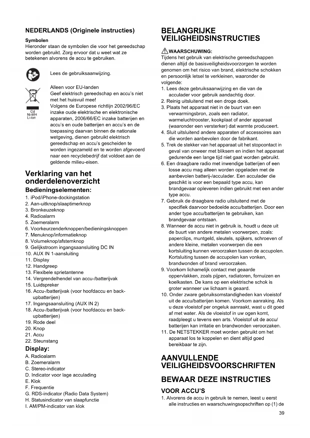 acculader voor gebruik aandachtig door.