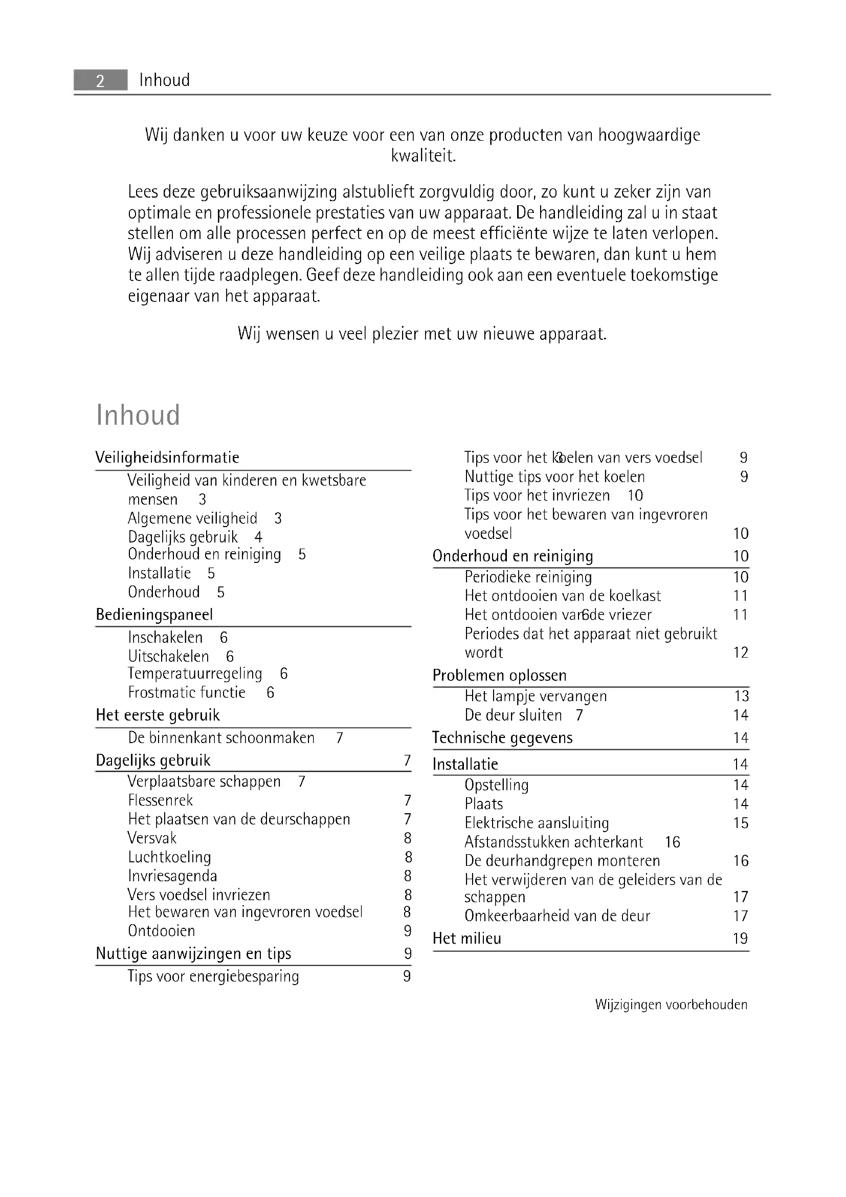 - Dit apparaat is bedoeld voor het bewaren van levensmiddelen en/of dranken in een gewoon huishouden, zoals uitgelegd in dit instructieboekje.