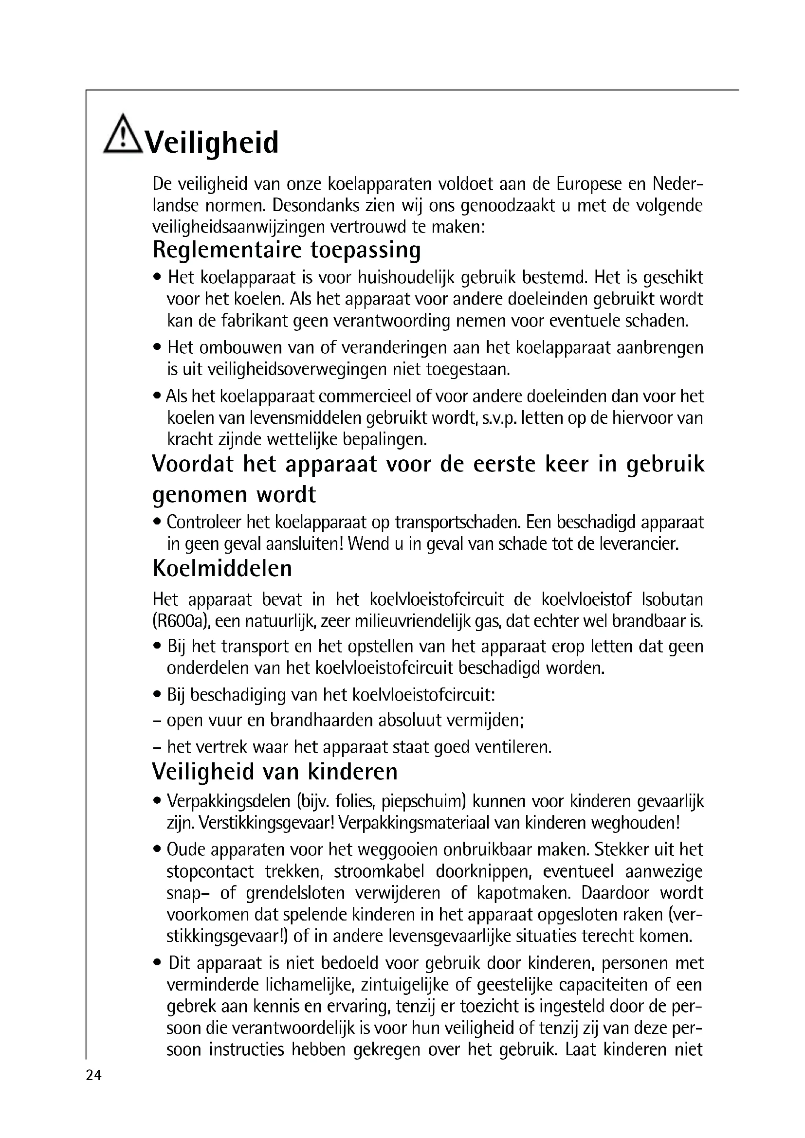 - Bij beschadiging van het koelvloeistofcircuit: – open vuur en brandhaarden absoluut vermijden; – het vertrek waar het apparaat staat goed ventileren. Veiligheid van kinderen