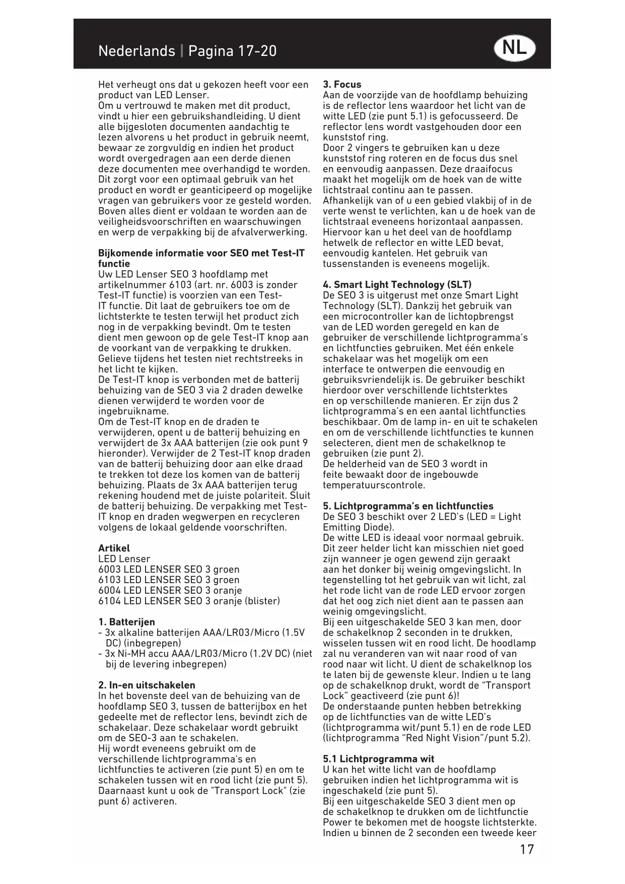 GEBRUIKSAANWIJZING SEO3 Ledlenser