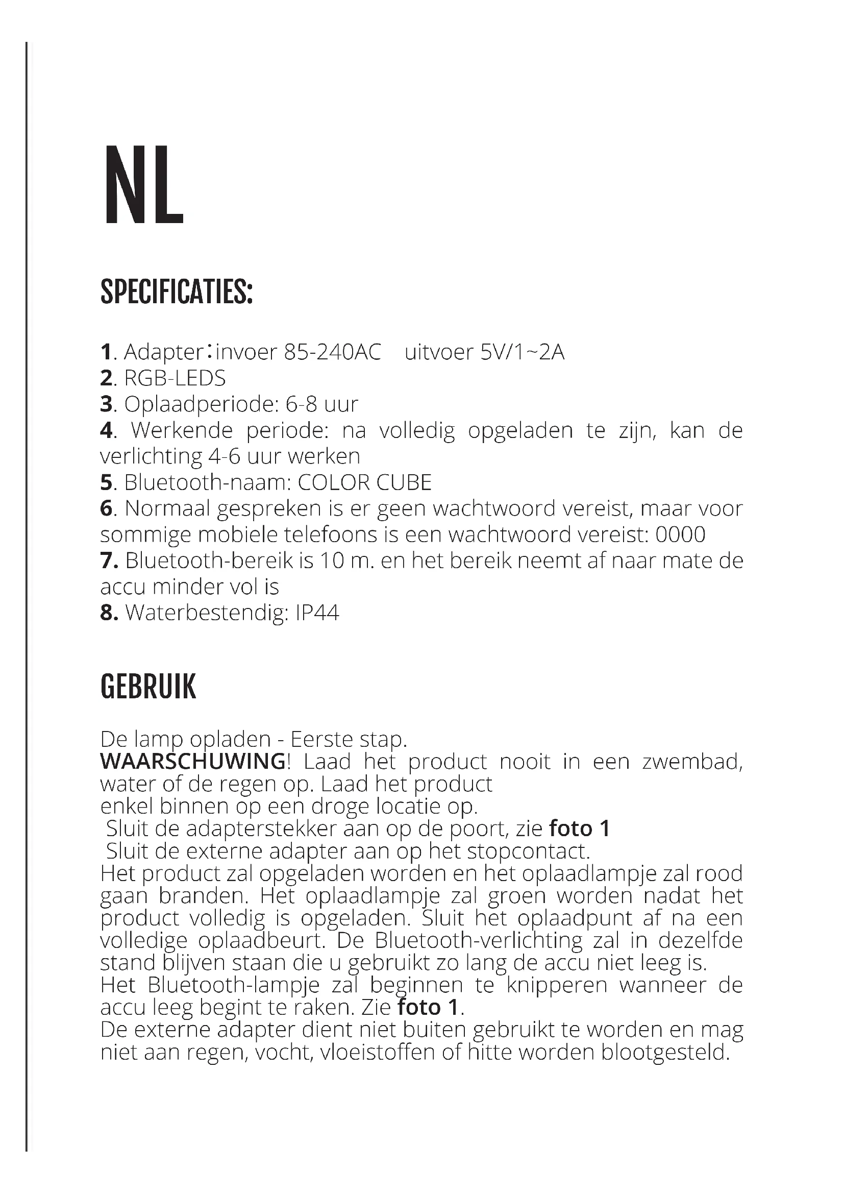 - Bluetooth-naam: COLOR CUBE