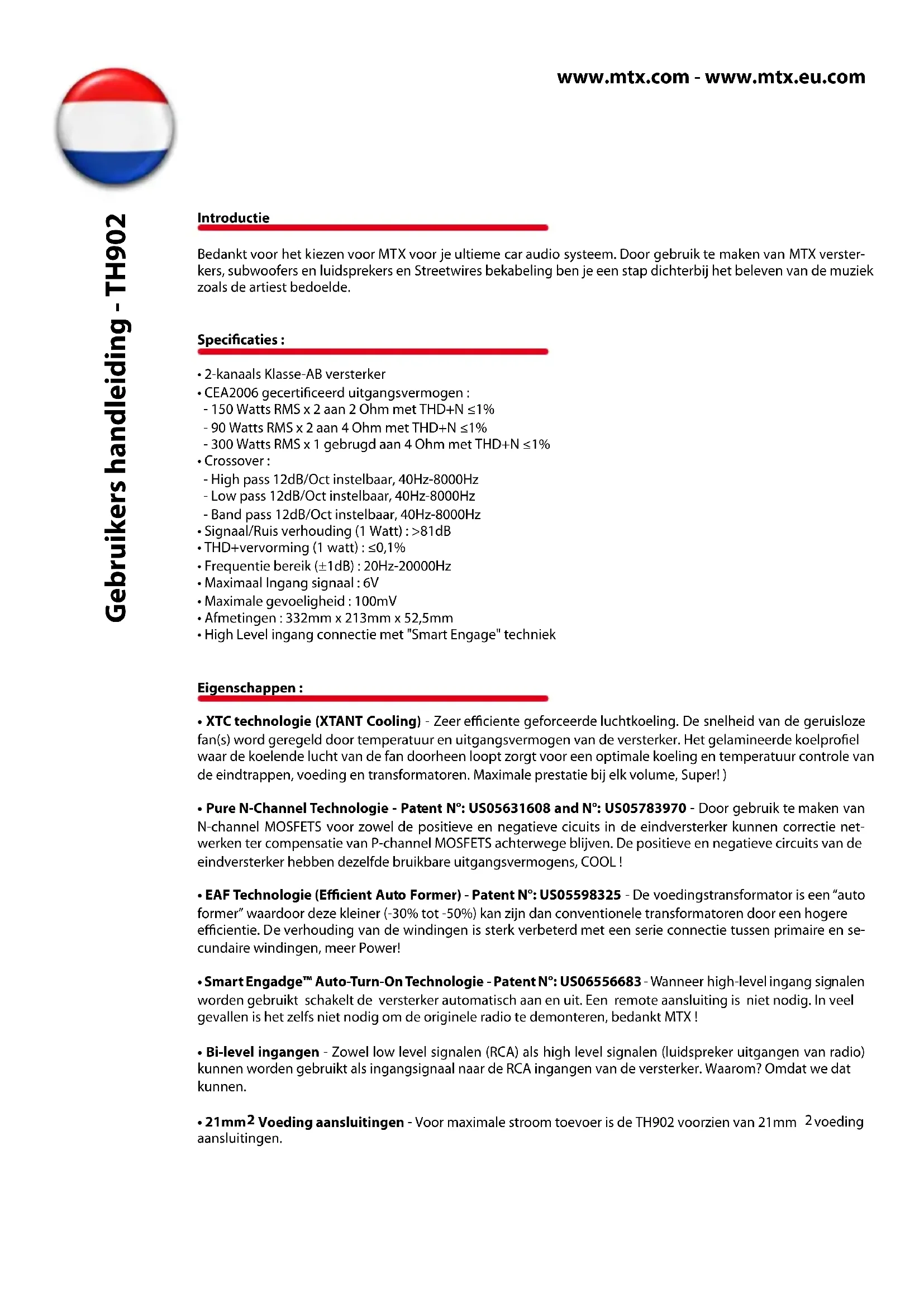 GEBRUIKSAANWIJZING TH902 MTX Audio