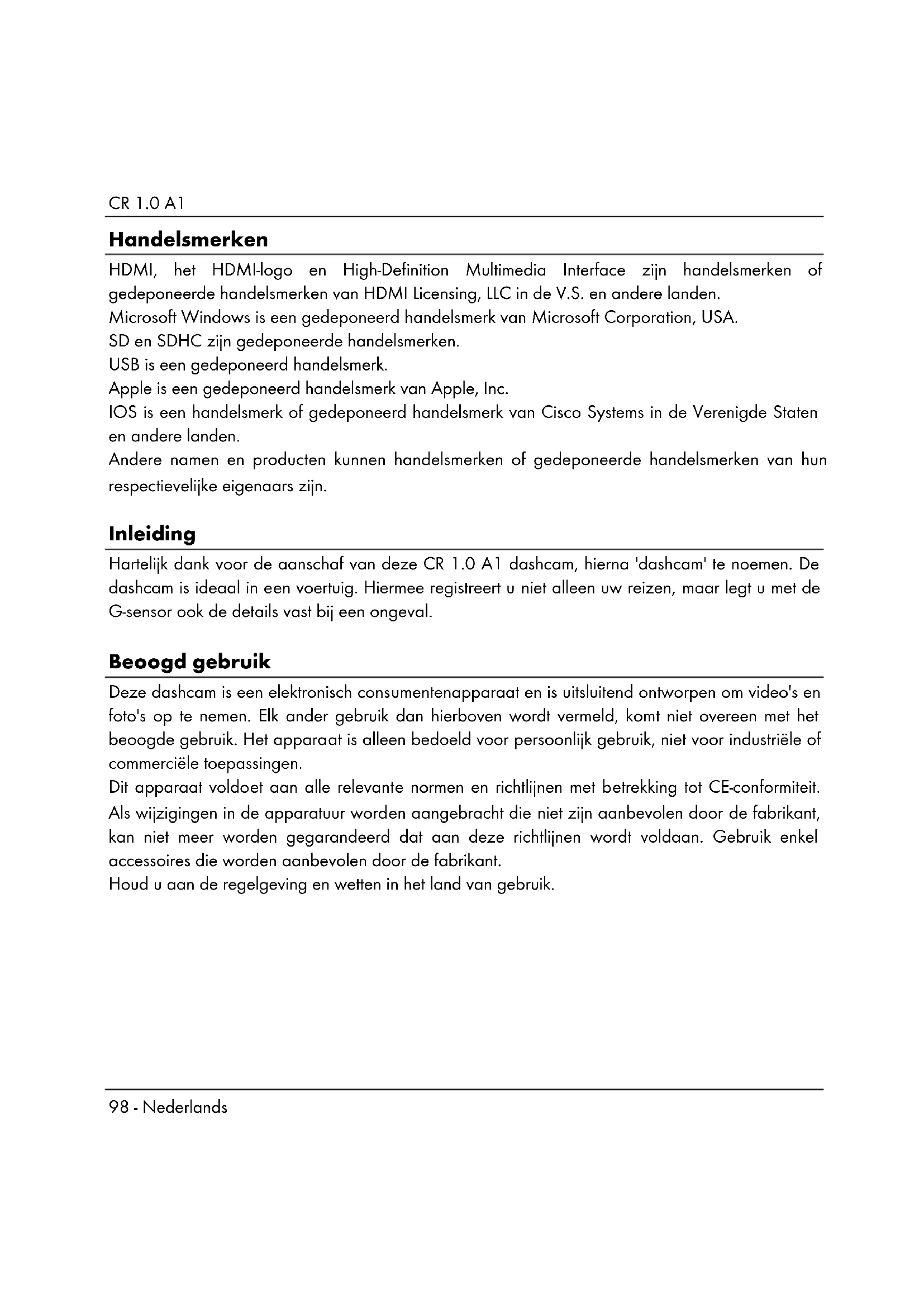 Hartelijk dank voor de aanschaf van deze CR 1.0 A1 dashcam, hierna 'dashcam' te noemen. De dashcam is ideaal in een voertuig. Hiermee registreert u Niet alleen uw reizen, maar legt u met de G-sensor ook de details vast bij een ongeval.