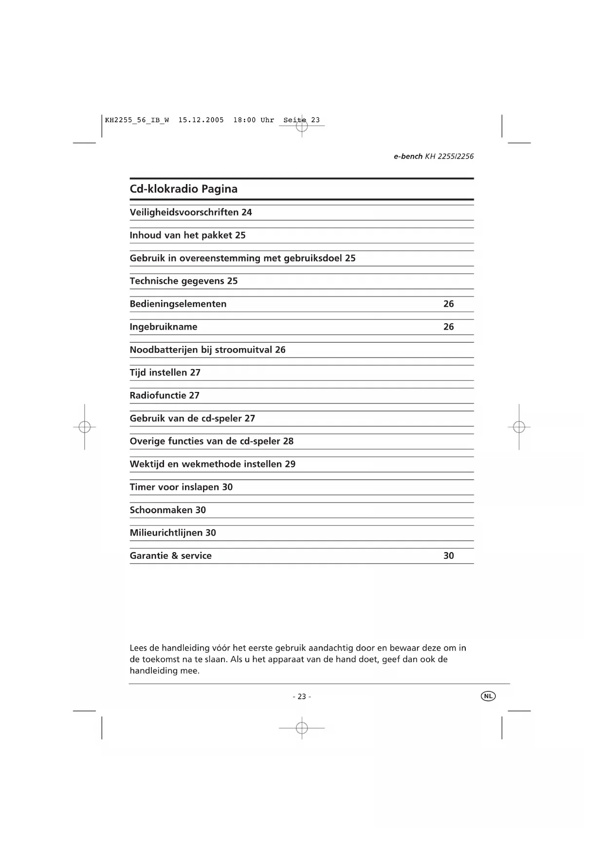 KH 2255 - Radiowekker EBENCH - Gratis gebruiksaanwijzing en handleiding