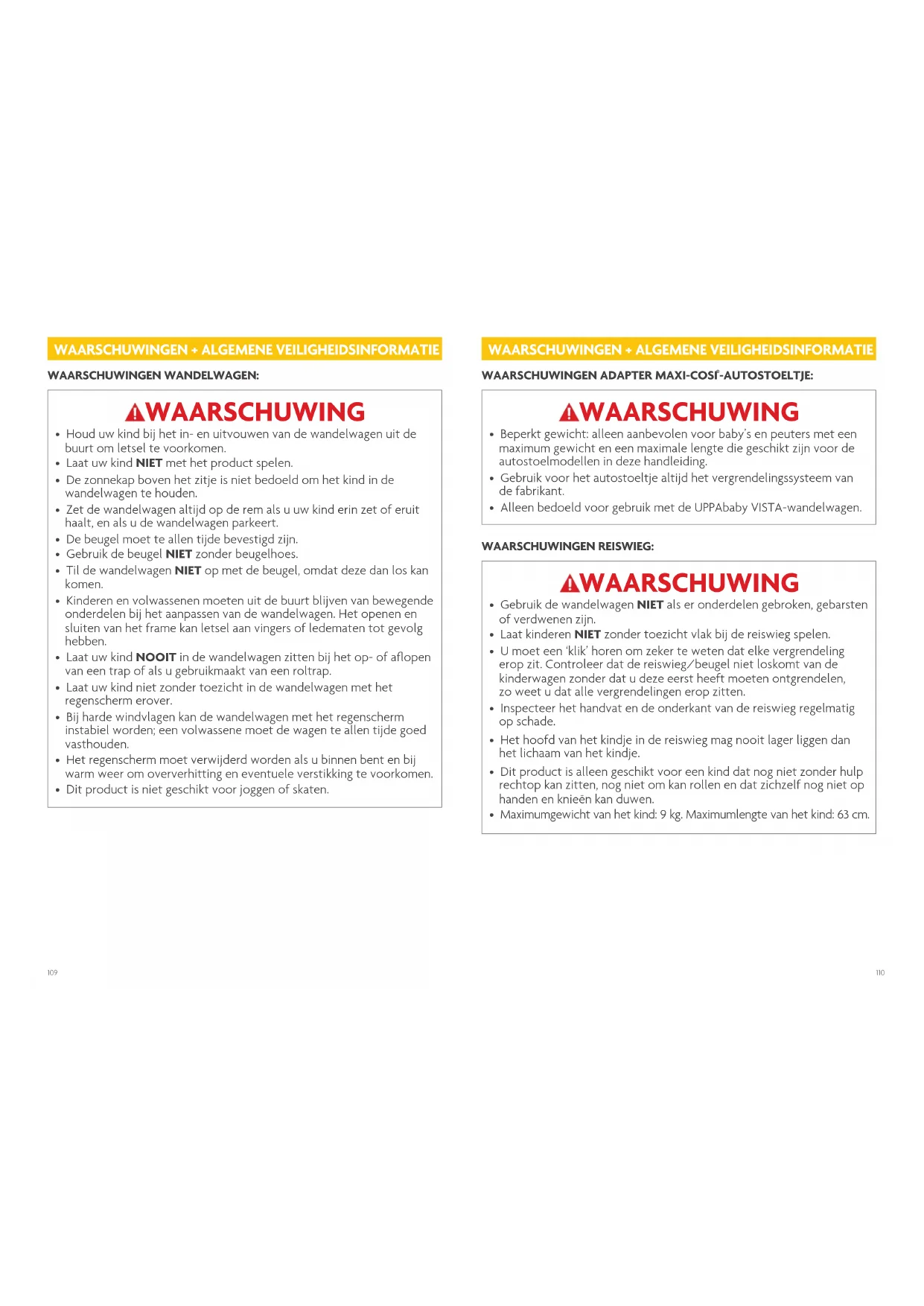 - Maximumgewicht van het kind: 9 kg. Maximumlengte van het kind: 63 cm. 0185_VISTA-EU_V4.indd 109-110 12/14/15 1:13 PM111
