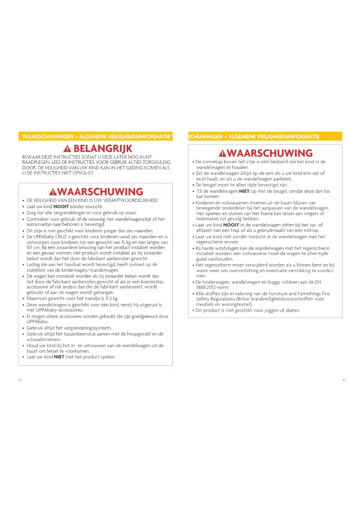 - Alleen bedoeld voor gebruik met de UPPAbaby CRUZ-wandelwagen. 0187_CRUZEU_Instructions_UK_V1.indd 84-85 9/16/14 9:15 AM86