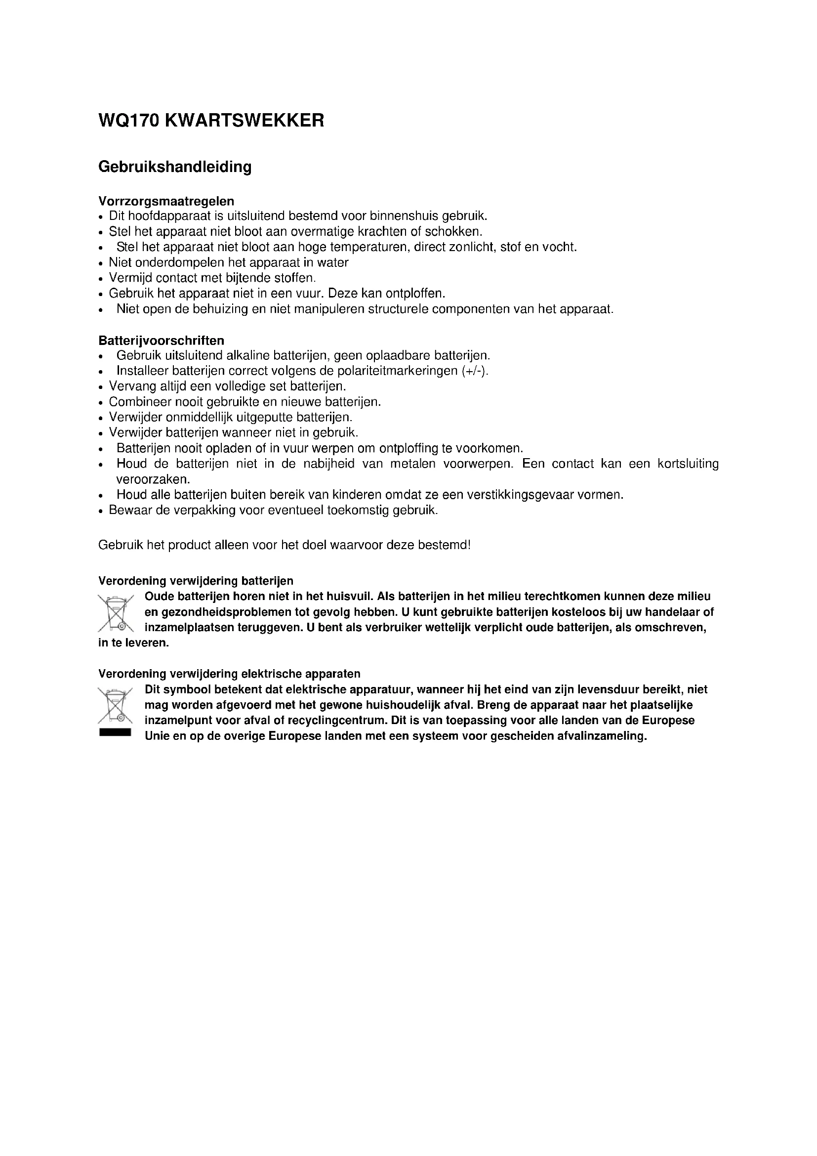 GEBRUIKSAANWIJZING WQ170 TECHNOLINE