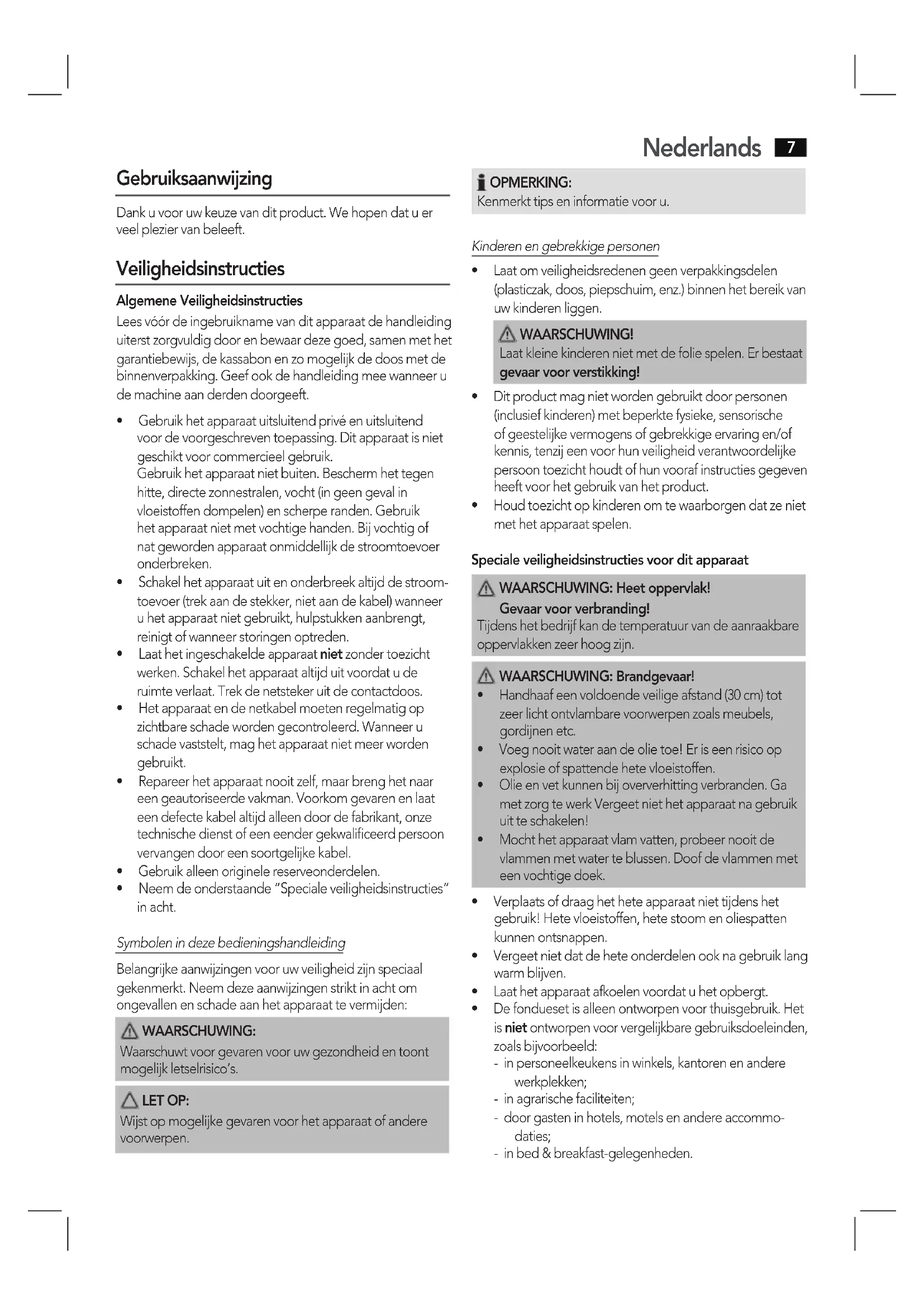 - Houdtoezichtopkinderenomtewaarborgendatzeniet met het apparaat spelen. Speciale veiligheidsinstructies voor dit apparaat WAARSCHUWING: Heet oppervlak! Gevaar voor verbranding! Tijdens het bedrijf kan de temperatuur van de aanraakbare oppervlakken zeer hoog zijn. WAARSCHUWING: Brandgevaar!