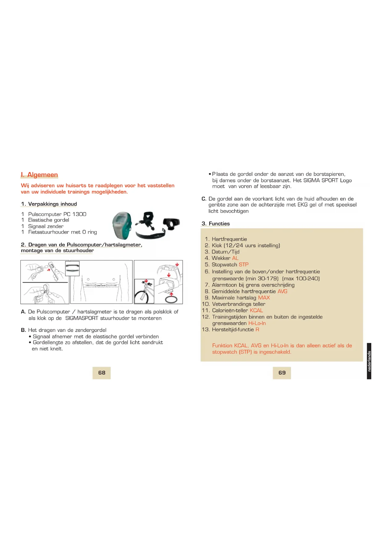 Funktion KCAL, AVG en Hi-Lo-In is dan alleen actief als de stopwatch (STP) is ingeschakeld. nederlands71 nederlands