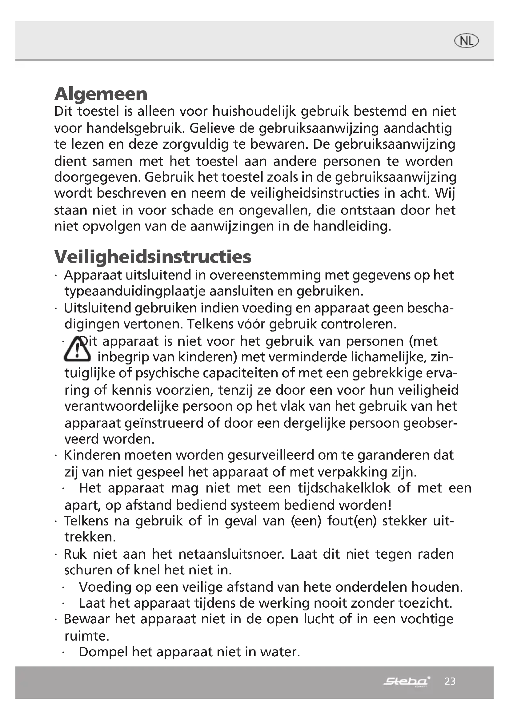 GEBRUIKSAANWIJZING SG 16 STEBA