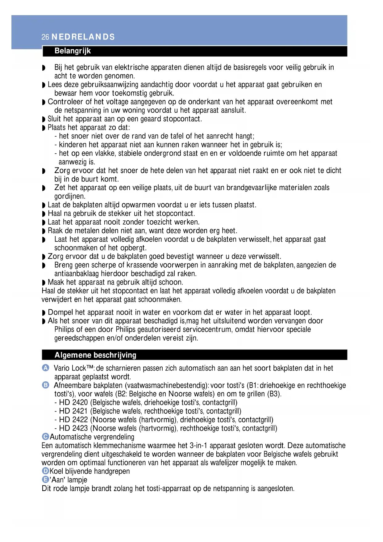 - HD 2420 (Belgische wafels, driehoekige tosti's, contactgrill)