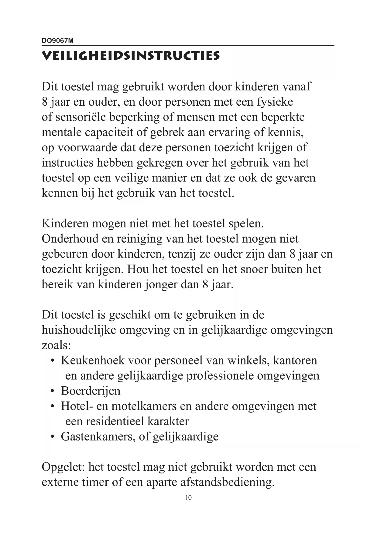 GEBRUIKSAANWIJZING DO9069C DOMO