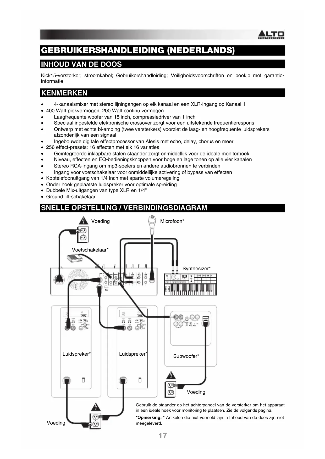 GEBRUIKSAANWIJZING Kick 15 ALTO