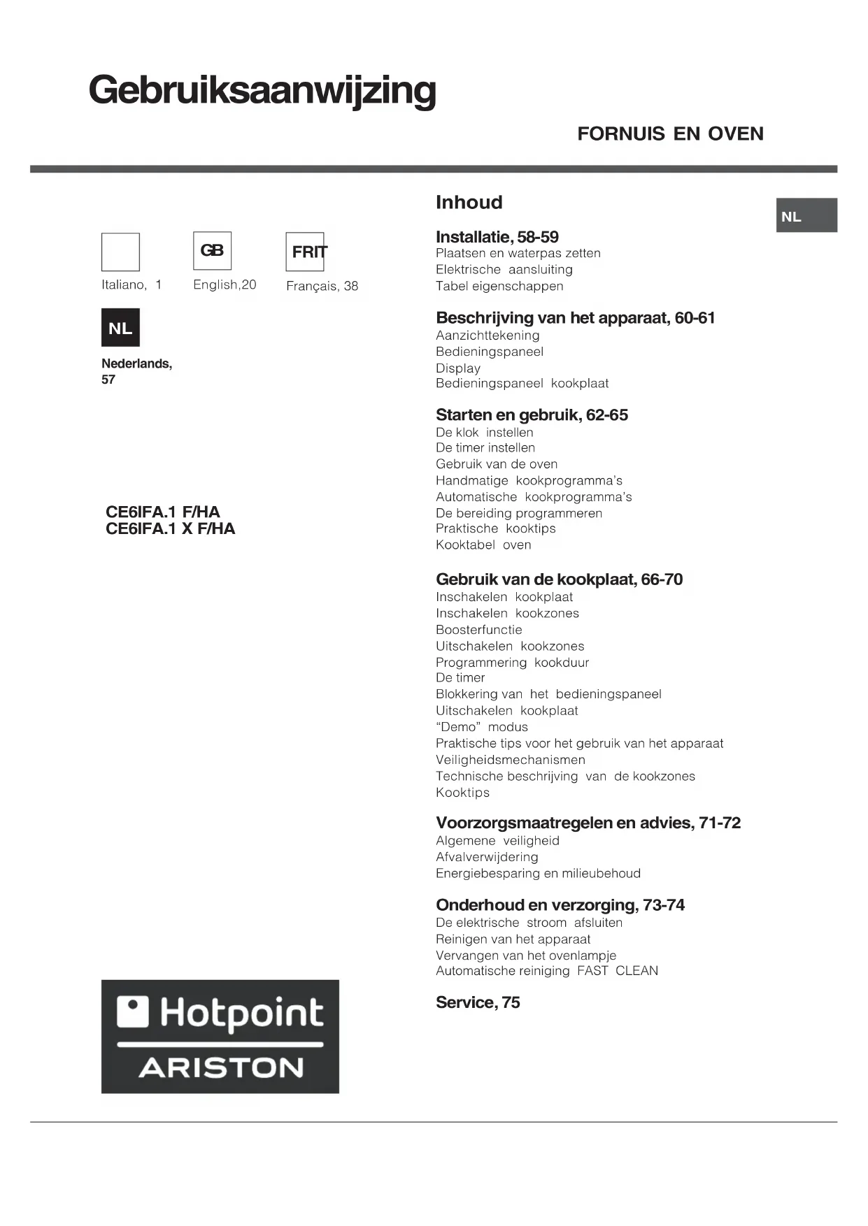 GEBRUIKSAANWIJZING CE6IFA.1 X F HA HOTPOINT