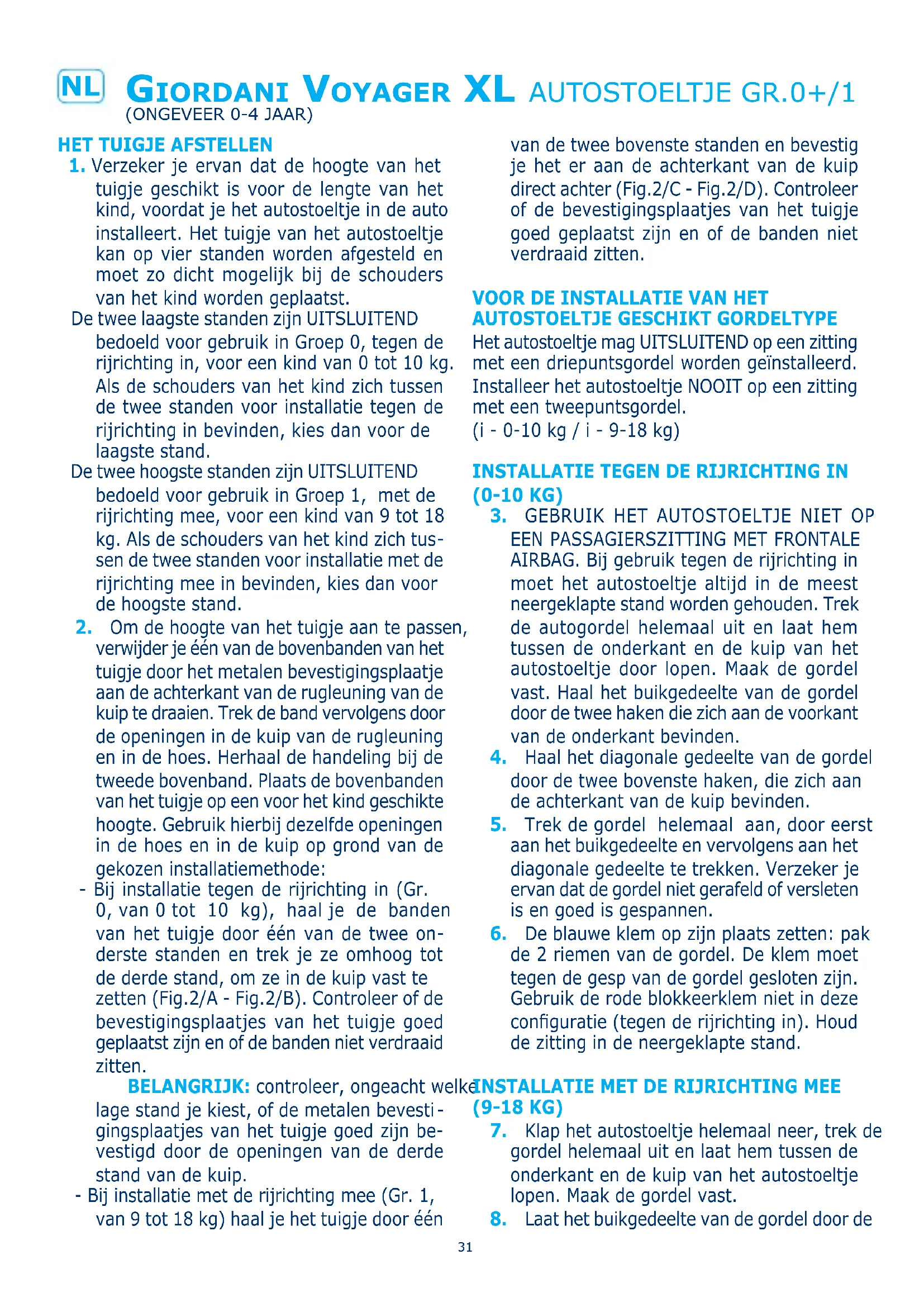Voyager - Autostoel Giordani - Gratis gebruiksaanwijzing en handleiding