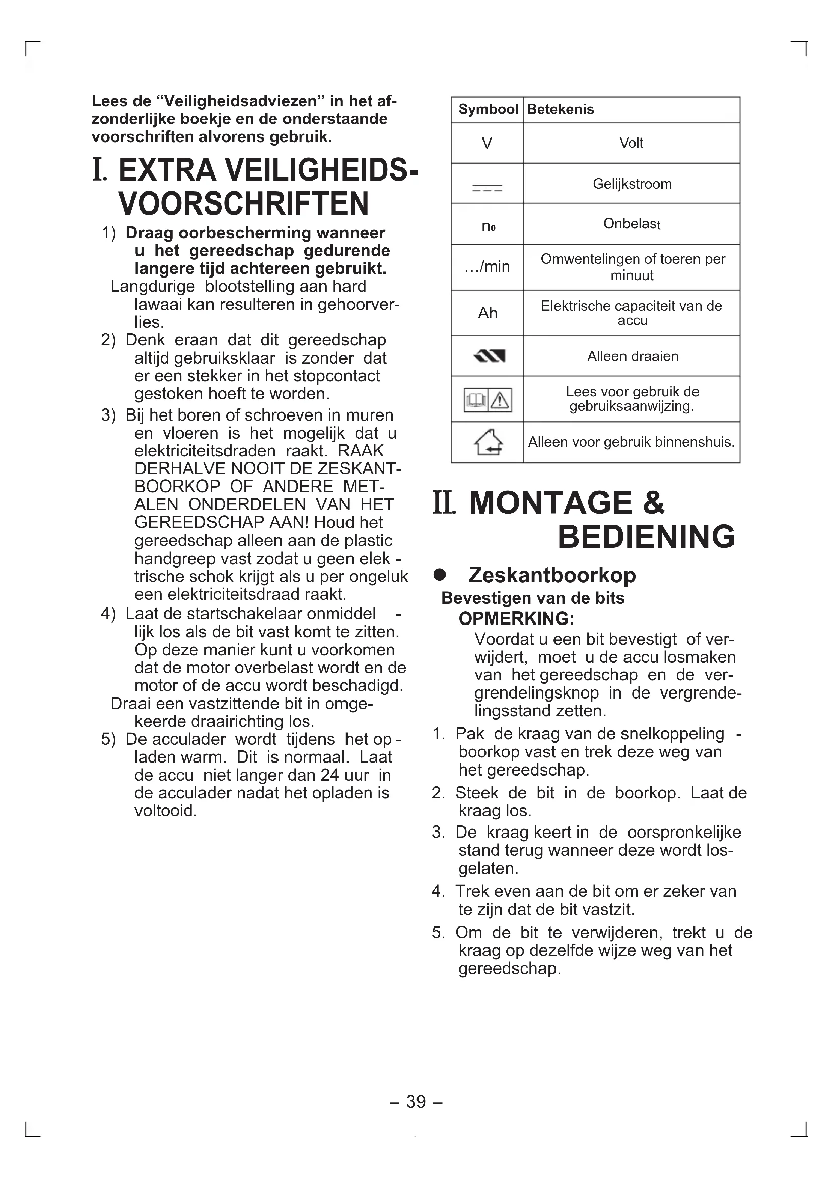 Onbelas …/minOmwentelingen of toeren per minuut Elektrische capaciteit van de accu Alleen draaienLees voor gebruik de gebruiksaanwijzing.Alleen voor gebruik binnenshuis.